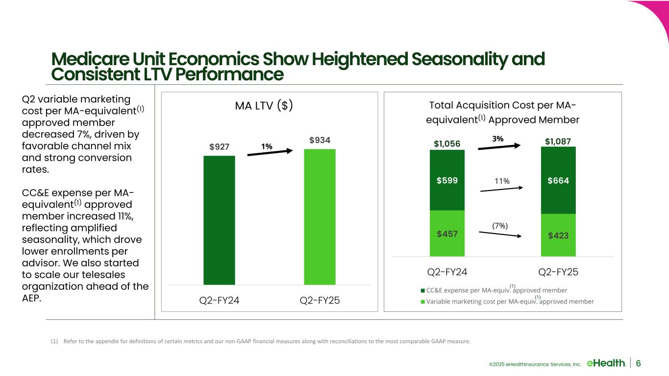 2025年第2四半期のメディケア・サプリメントの制約LTVは2024年第2四半期比で29%増加した。