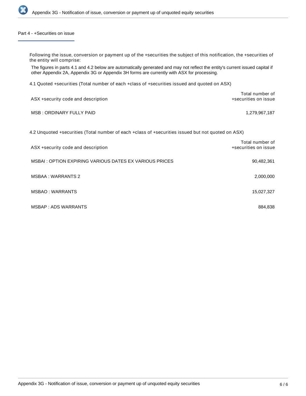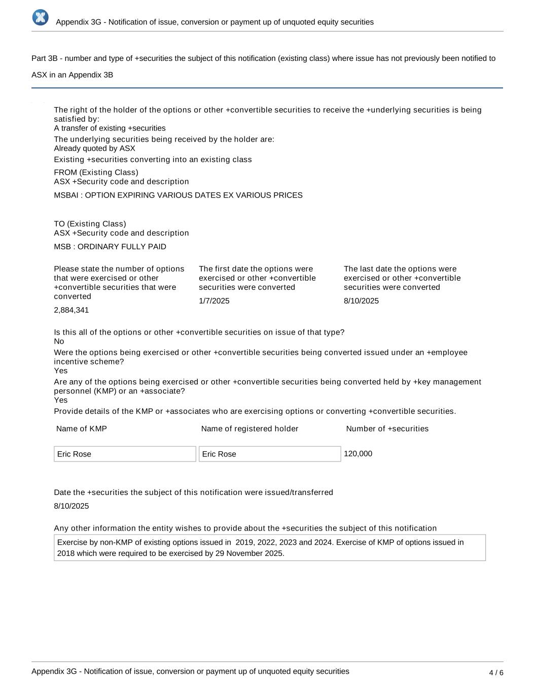 Appendix 3G of Mesoblast Ltd, dated October 15, 2025. |