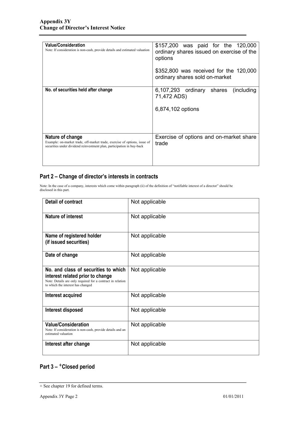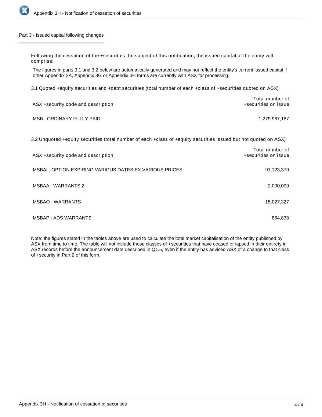 Appendix 3H of Mesoblast Ltd, dated October 15, 2025. |