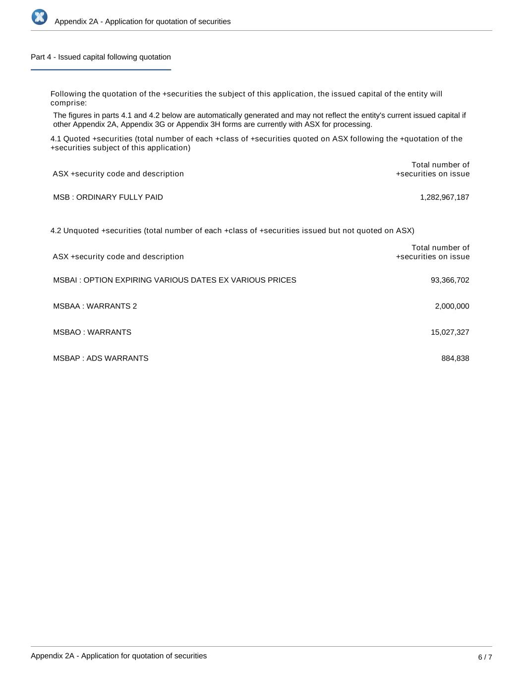 Appendix 2A of Mesoblast Ltd, dated October 15, 2025. |