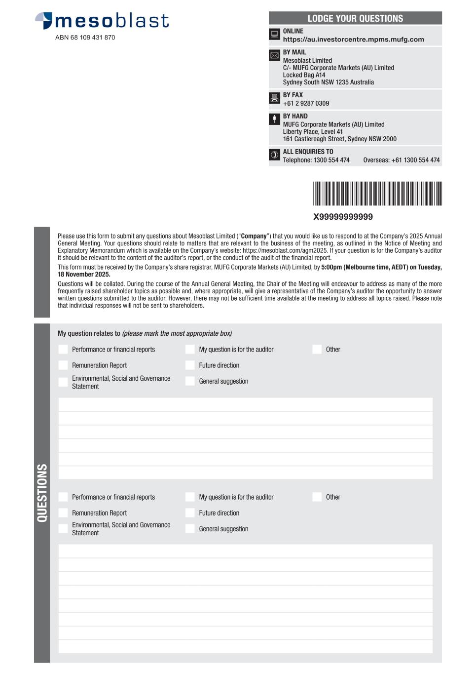 M ESO B LA ST LIM ITED A N N U A L R EPO RT 2025 ANNUAL REPORT 2025 GLOBAL LEADER IN ALLOGENEIC CELLULAR MEDICINES FOR INFLAMMATORY DISEASES