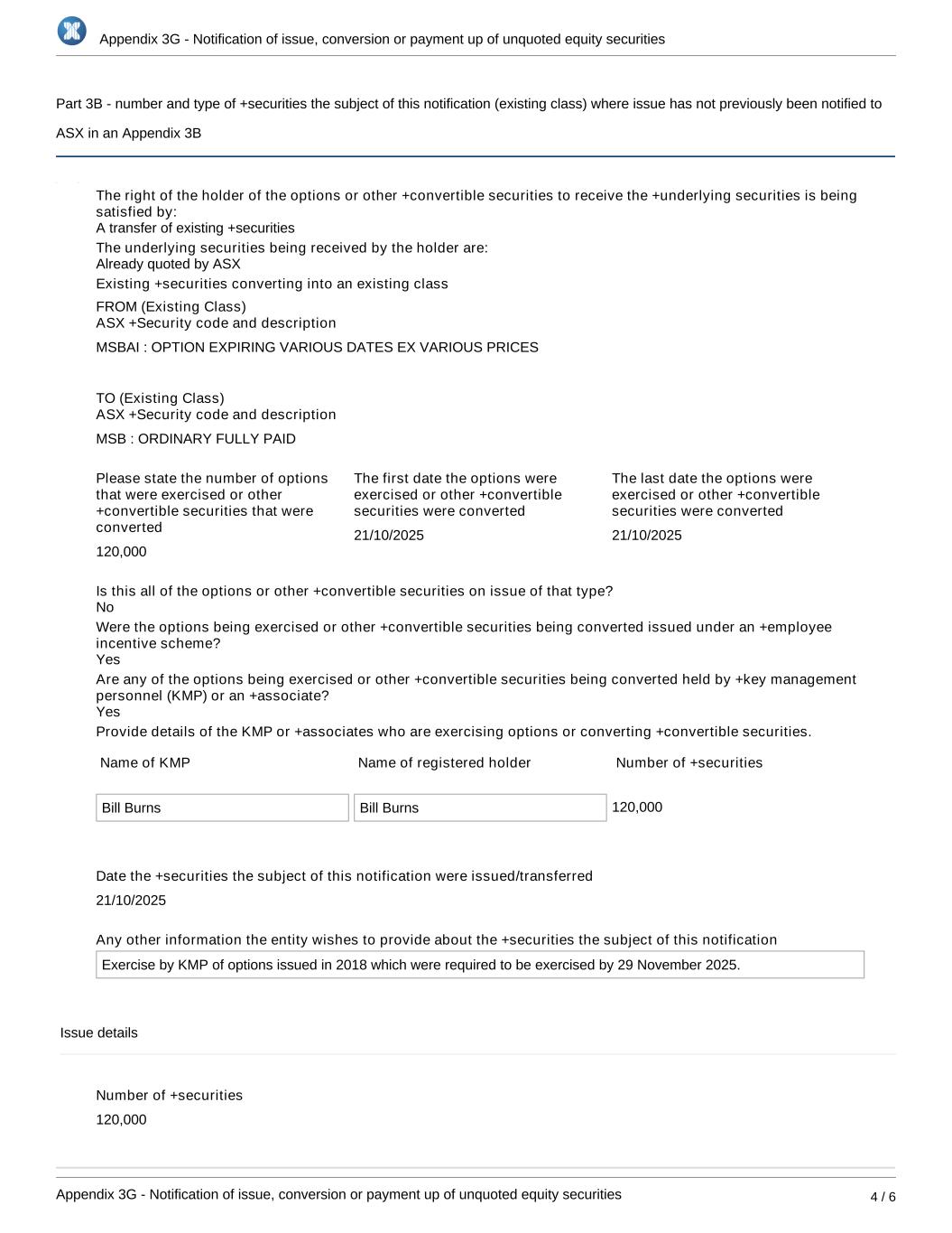 Appendix 3G of Mesoblast Ltd, dated October 28, 2025. |