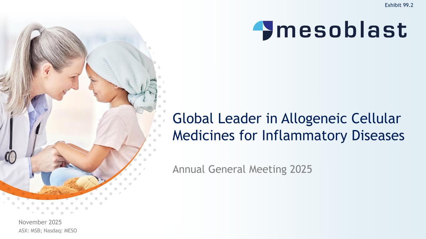 Global Leader in Allogeneic Cellular Medicines for Inflammatory Diseases November 2025 ASX: MSB; Nasdaq: MESO Annual General Meeting 2025 Exhibit 99.2