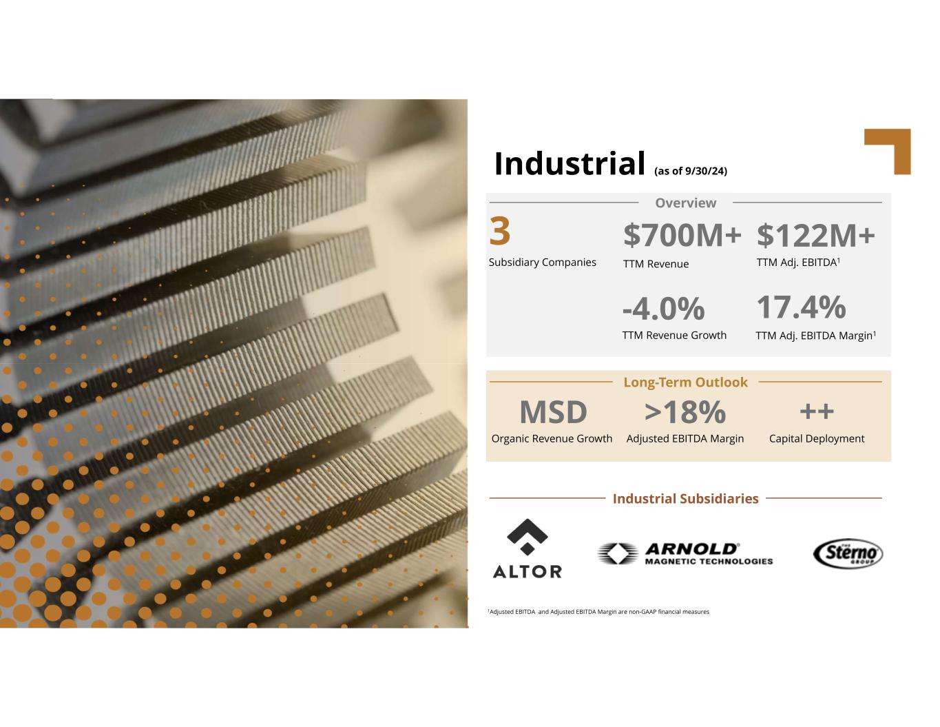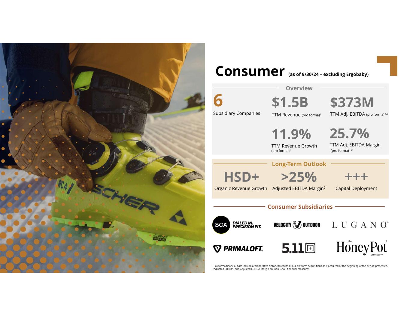 SubsidiariesCODI By The Numbers* *As at 09/30/2024 (includes Ergobaby) $161M $9.3B+ $5.1B+ $505M+ $2.2B+ TTM Adjusted Earnings1 Aggregate Acquisitions 24 Platforms and 34 Add-Ons Invested Capital TTM pro forma Subsidiary Adjusted EBITDA1,2 TTM pro forma Revenue2 22.5% TTM pro forma Subsidiary Adjusted EBITDA Margin1,2 Consumer Businesses Industrial Businesses 1Subsidiry Adjusted EBITDA, Adjusted EBITDA Margins, & Adjusted Earnings are non-GAAP financial measures. Please see Appendix. 2Pro forma financial data includes comparative historical results of our platform acquisitions as if acquired at the beginning of the period presented.
