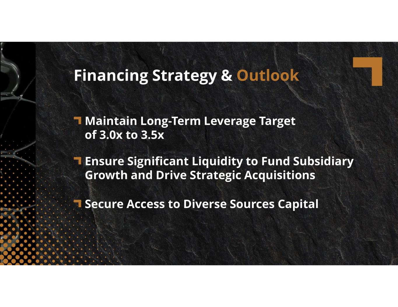 compassdiversified.com Maintain Long-Term Leverage Target of 3.0x to 3.5x Financing Strategy & Outlook Secure Access to Diverse Sources Capital Ensure Significant Liquidity to Fund Subsidiary Growth and Drive Strategic Acquisitions