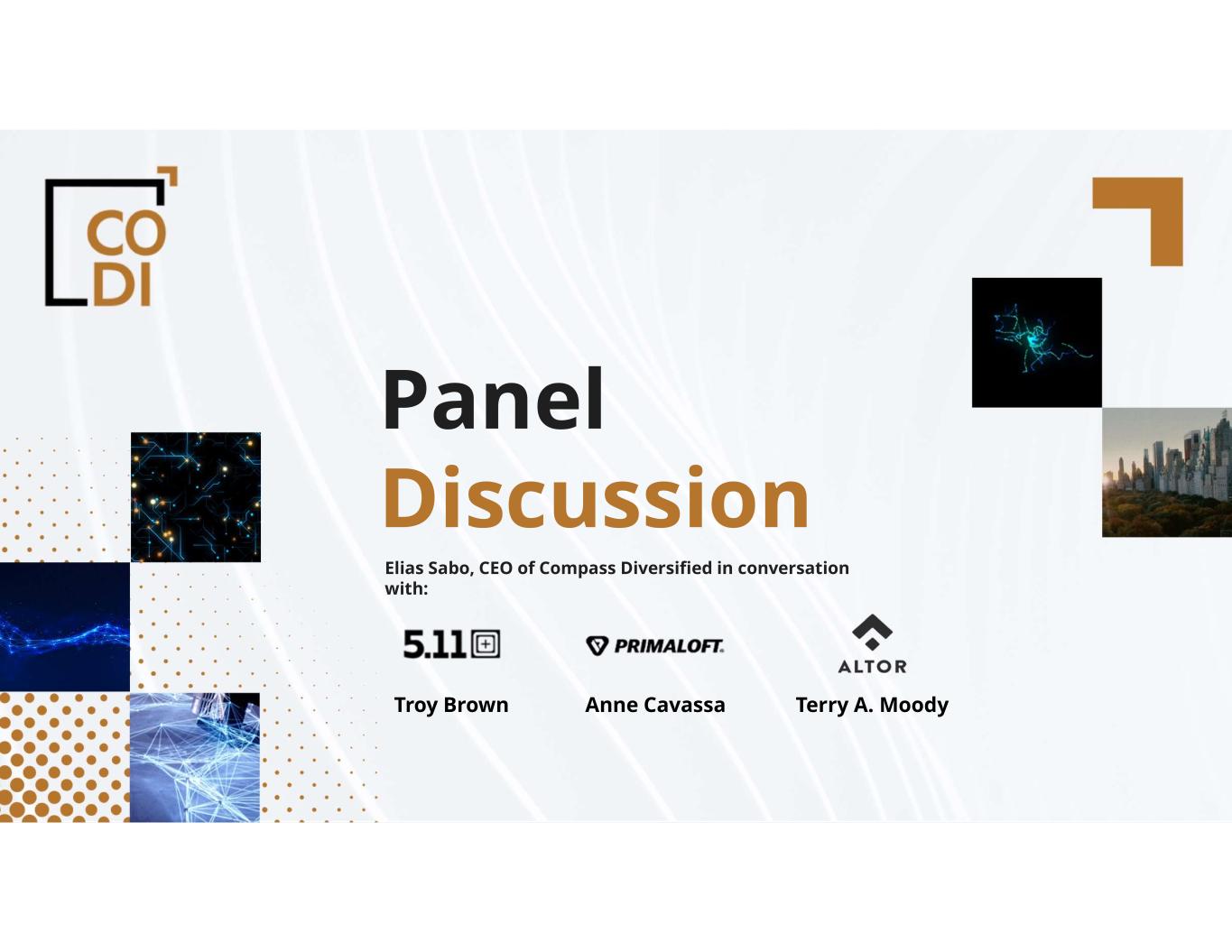 compassdiversified.com Panel Discussion Elias Sabo, CEO of Compass Diversified in conversation with: Troy Brown Anne Cavassa Terry A. Moody