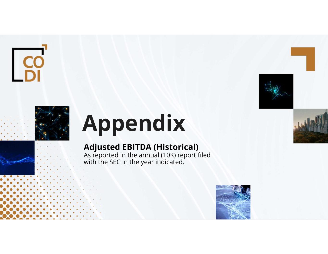 compassdiversified.com Appendix Adjusted EBITDA (Historical) As reported in the annual (10K) report filed with the SEC in the year indicated.