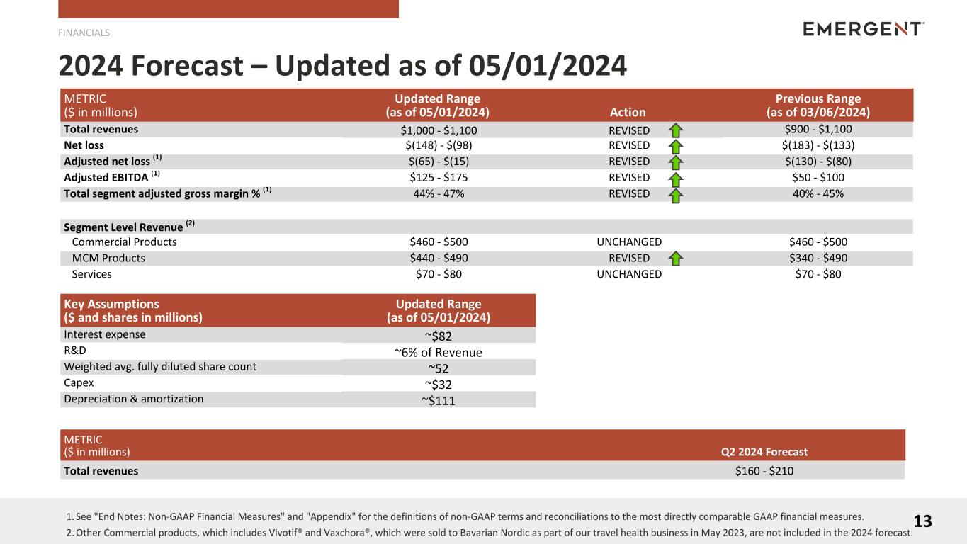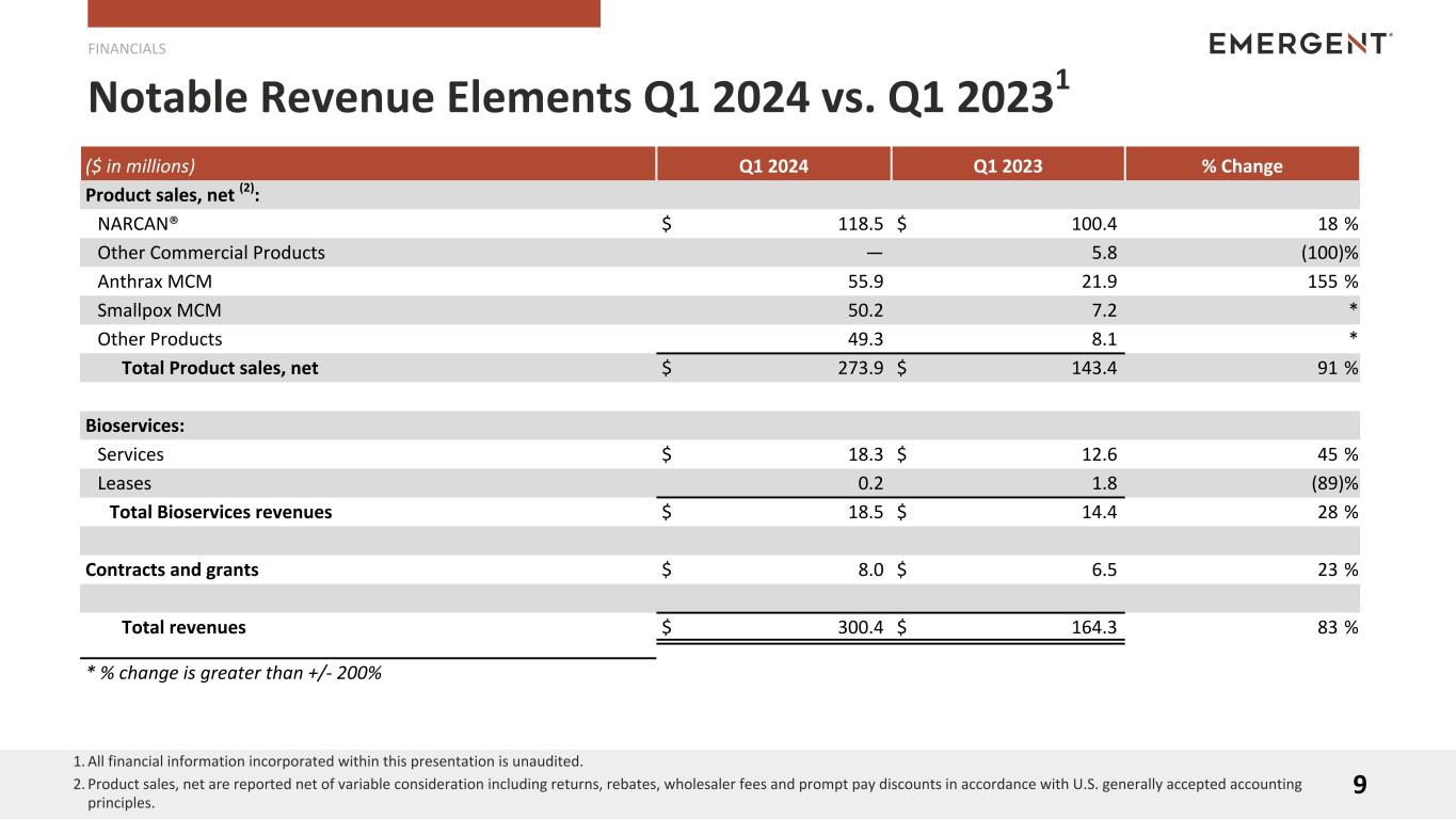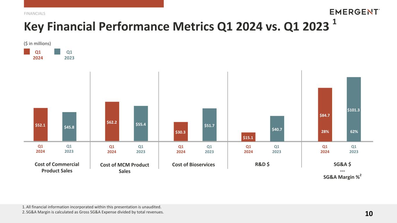 メリーランド州ゲーサーバーグ、2024年5月1日-エマージェント・バイオソリューションズ・インク(NYSE:EBS)は本日、2024年3月31日に終了した第1四半期の業績を発表しました。