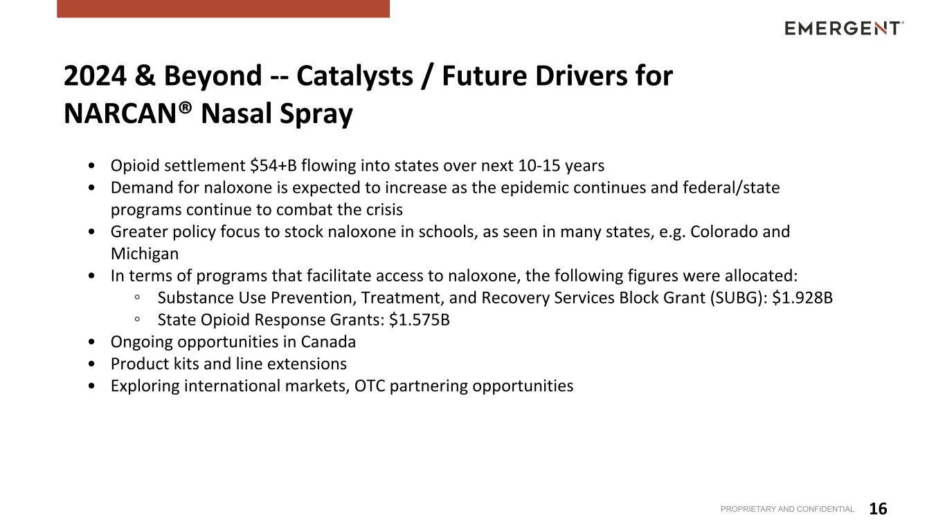 -メディカル・カウンターメジャー(MCM)およびNARCAN®製品に重点を置いた基盤強化の継続的な進展