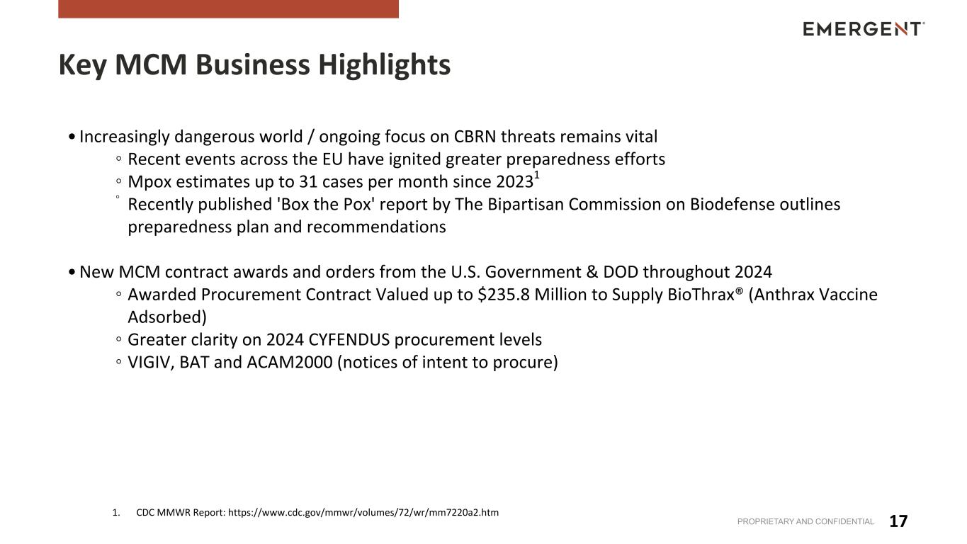 -Anthrax MCM - CYFENDUS®(旧名AV7909)、BioThrax®、Anthrasil®およびRaxibacumabからの寄与の可能性がある。