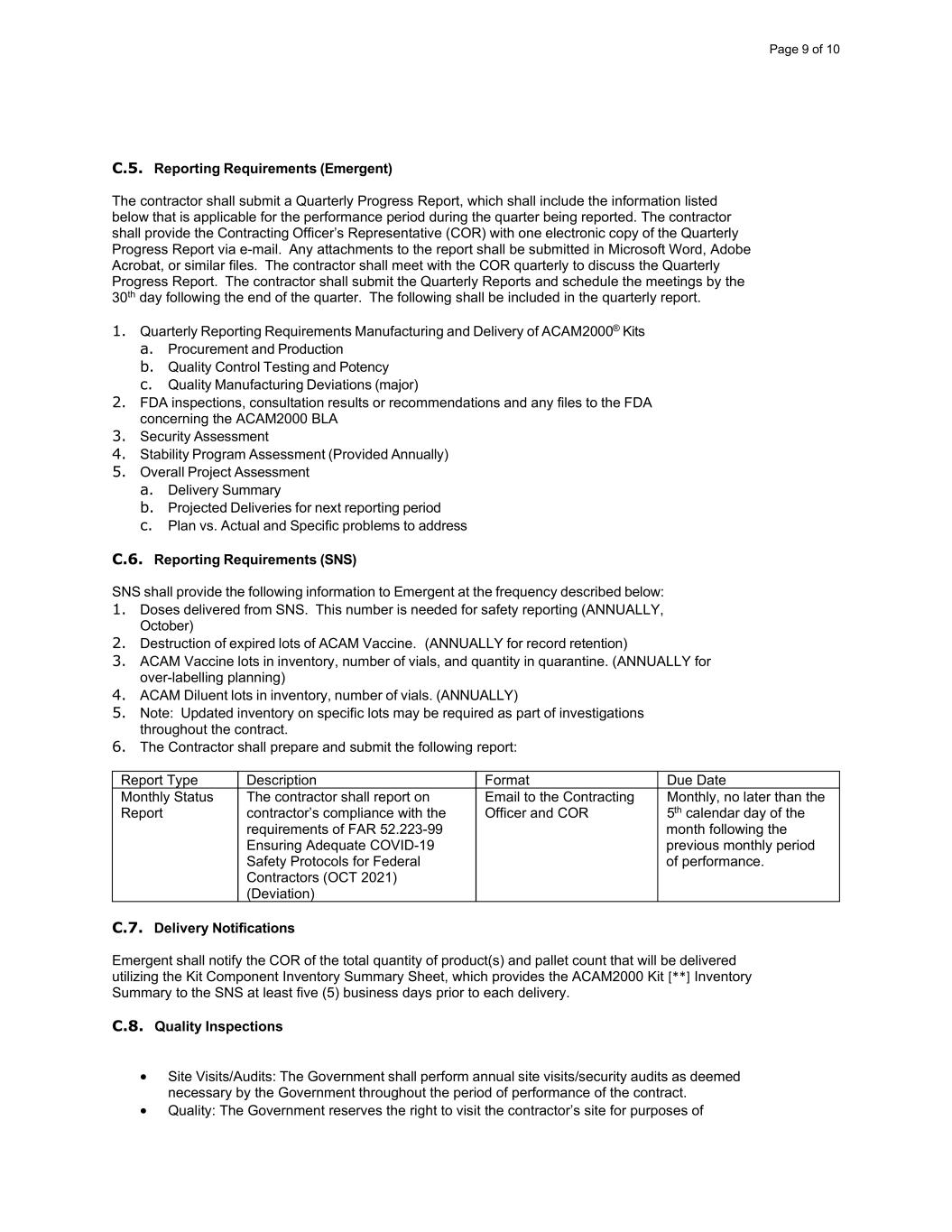 •Received "no action indicated" (NAI) status for Baltimore Bayview Manufacturing Facility