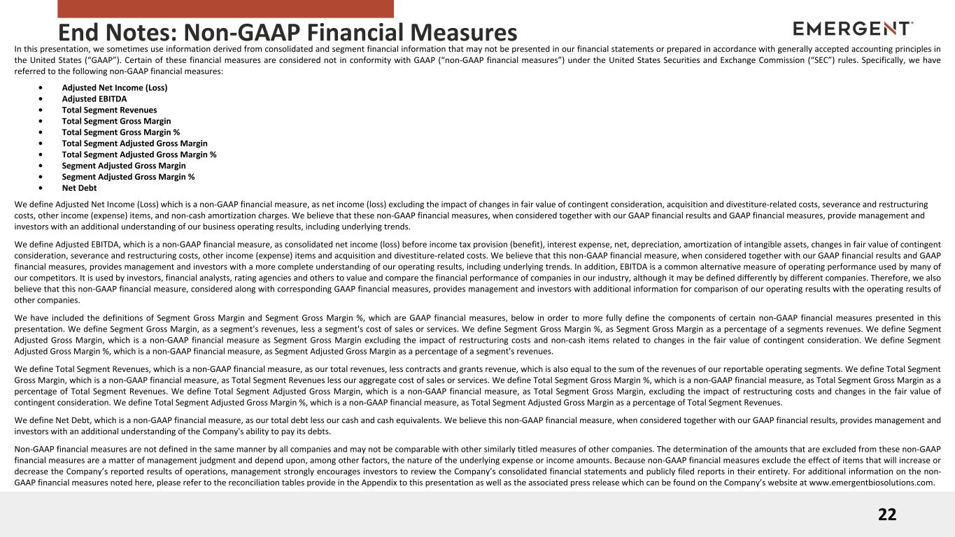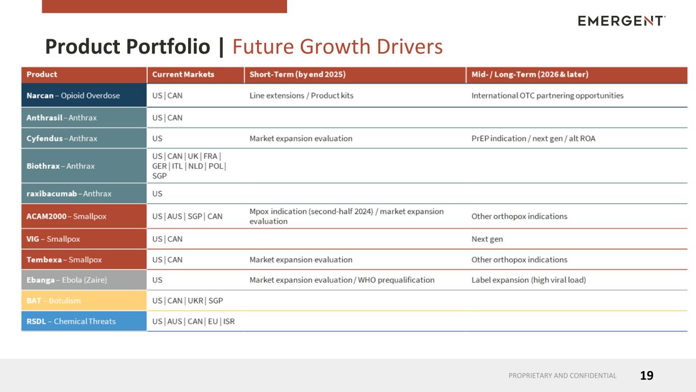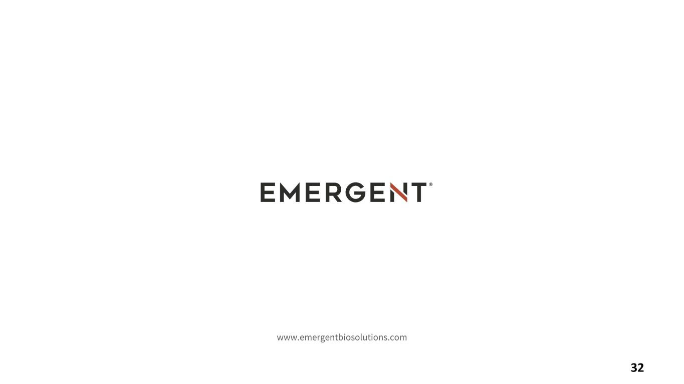 "We delivered a strong quarter with growth across all our key products,” said Joe Papa, President and CEO at Emergent. “We also took significant actions to improve our debt position, reduce operating expenses and strengthen our financial flexibility. Emergent's transformation will not happen overnight. The actions we are implementing today, combined with the assets Emergent possesses, will enable us to move faster, reach farther and be more nimble. The public health threats we collectively face are changing, and so is Emergent.”