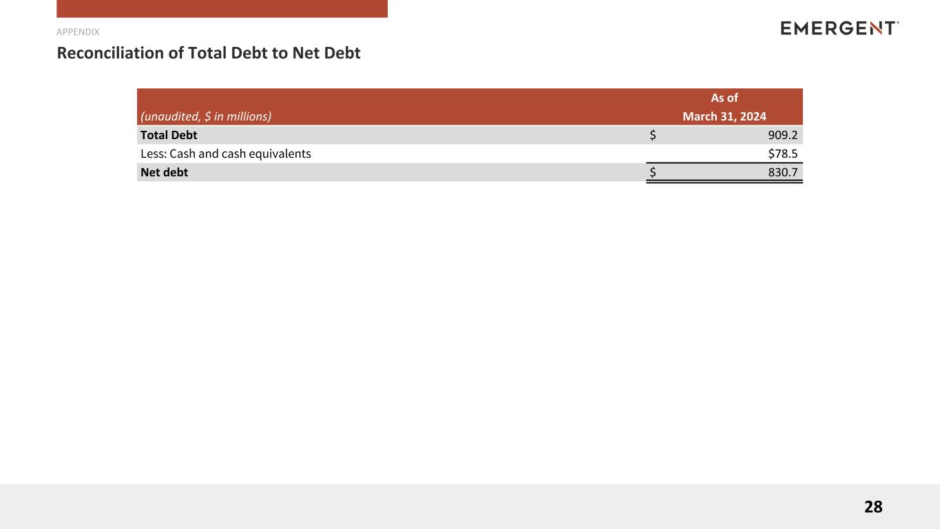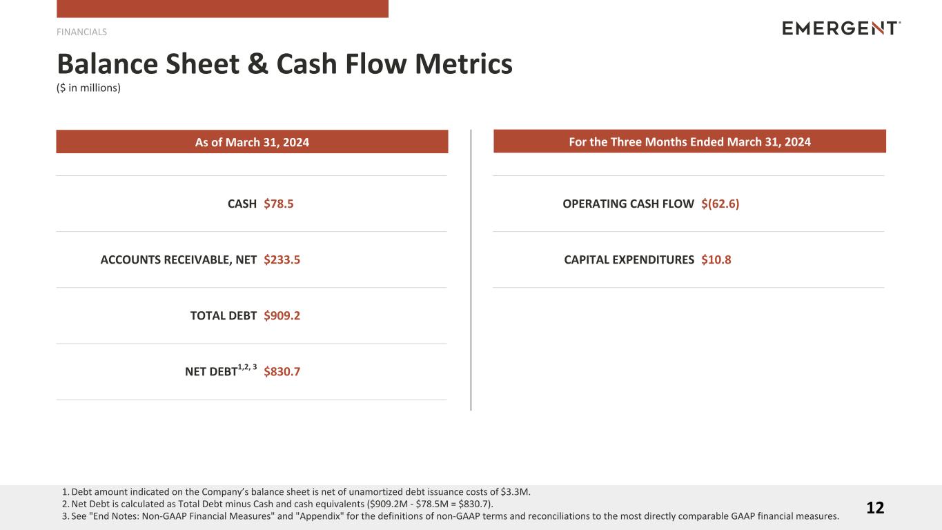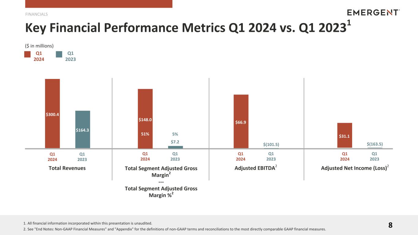 "We delivered a strong quarter with growth across all our key products,” said Joe Papa, President and CEO at Emergent. “We also took significant actions to improve our debt position, reduce operating expenses and strengthen our financial flexibility. Emergent's transformation will not happen overnight. The actions we are implementing today, combined with the assets Emergent possesses, will enable us to move faster, reach farther and be more nimble. The public health threats we collectively face are changing, and so is Emergent.”