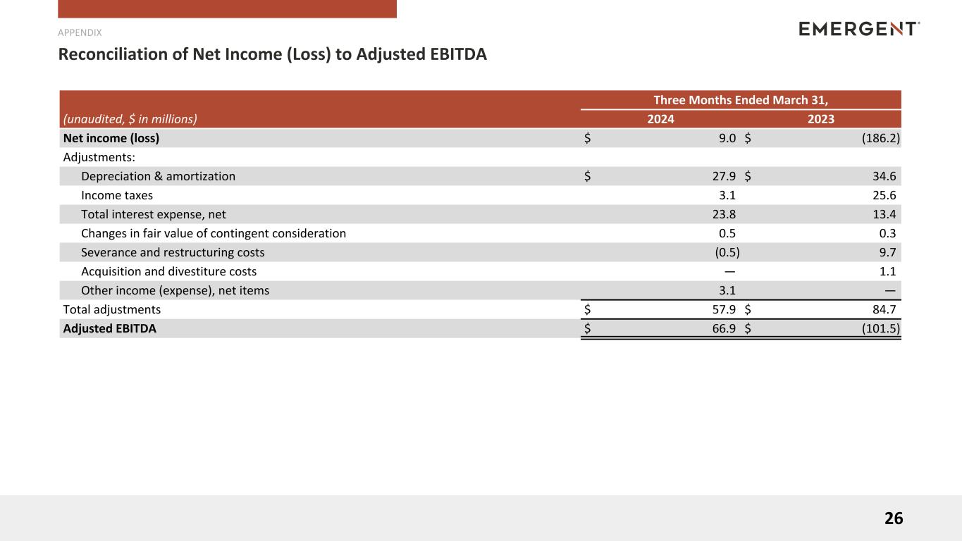 •First Quarter 2024 Net Income of $9.0 million and Adjusted EBITDA of $66.9 million