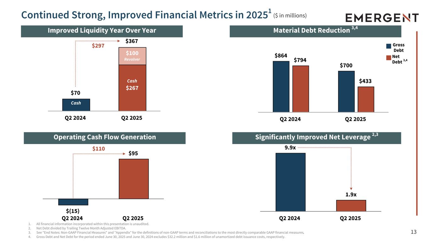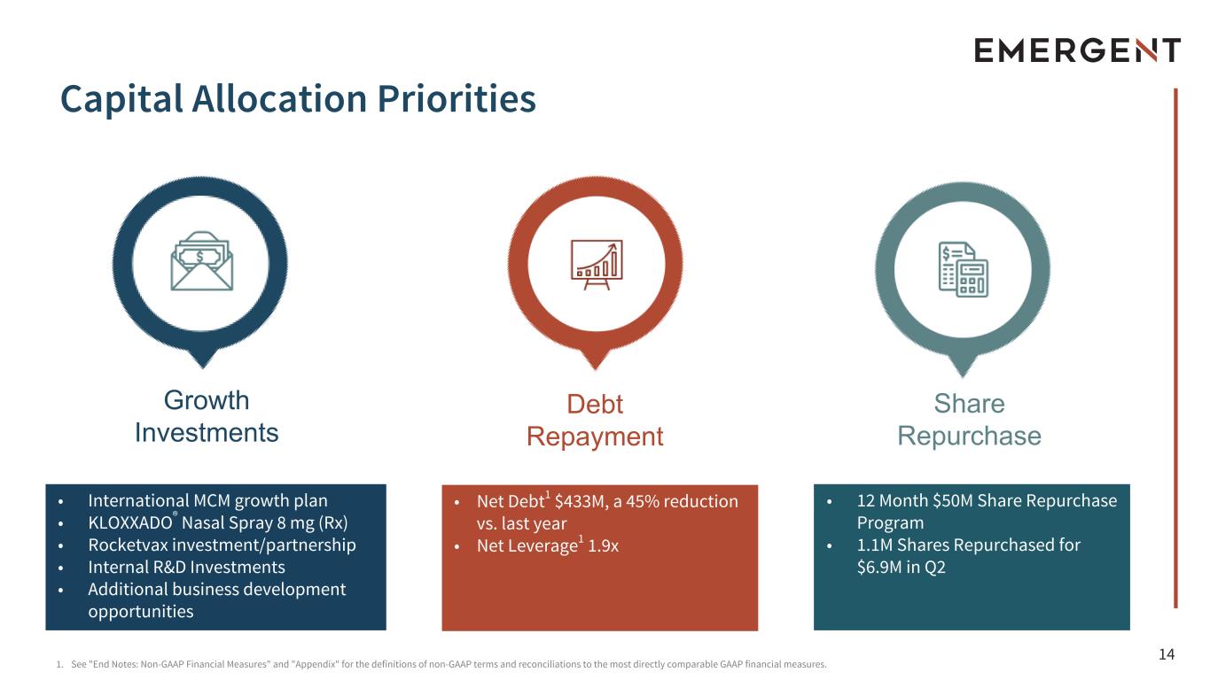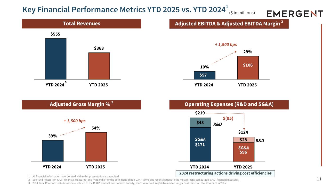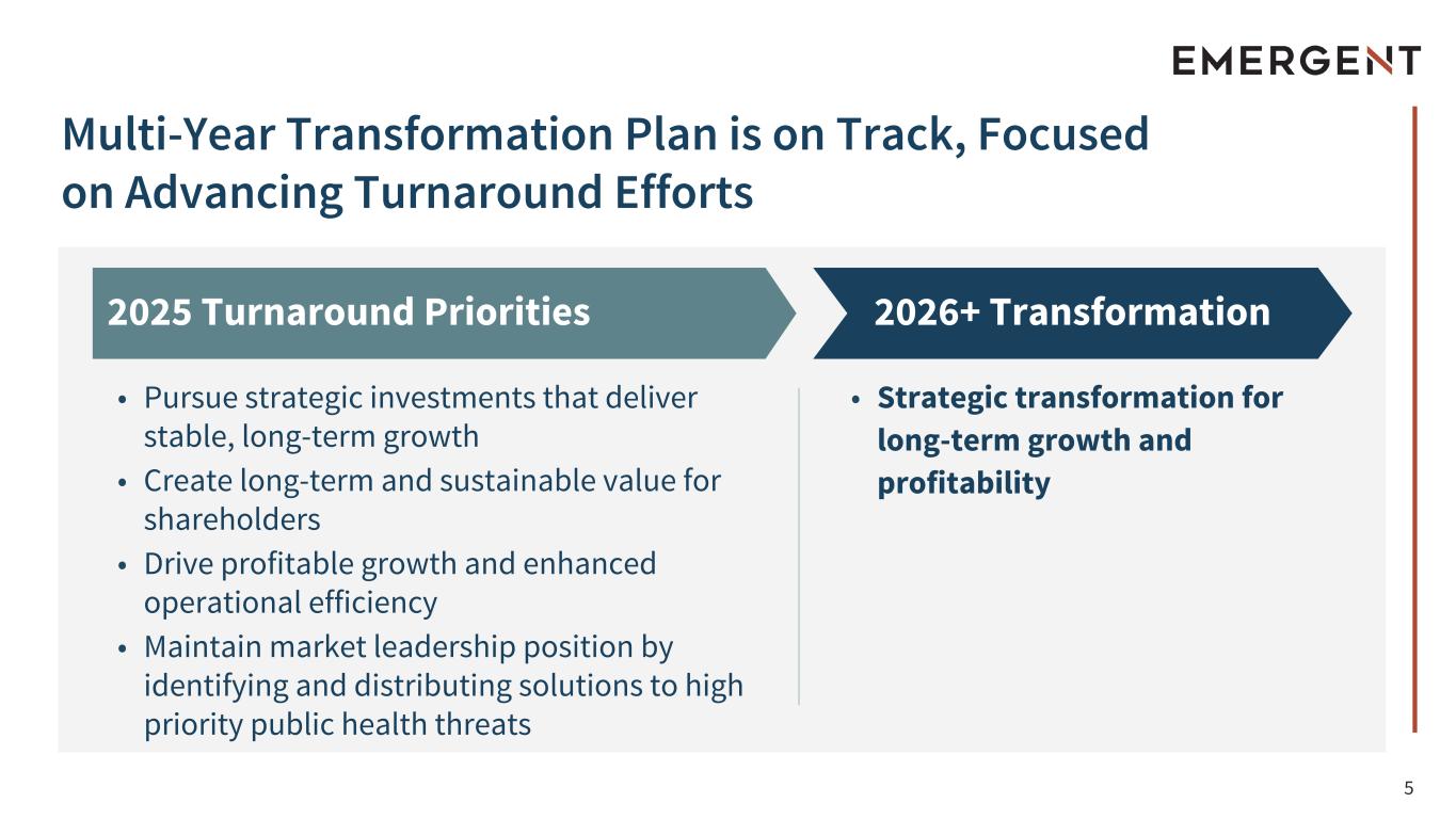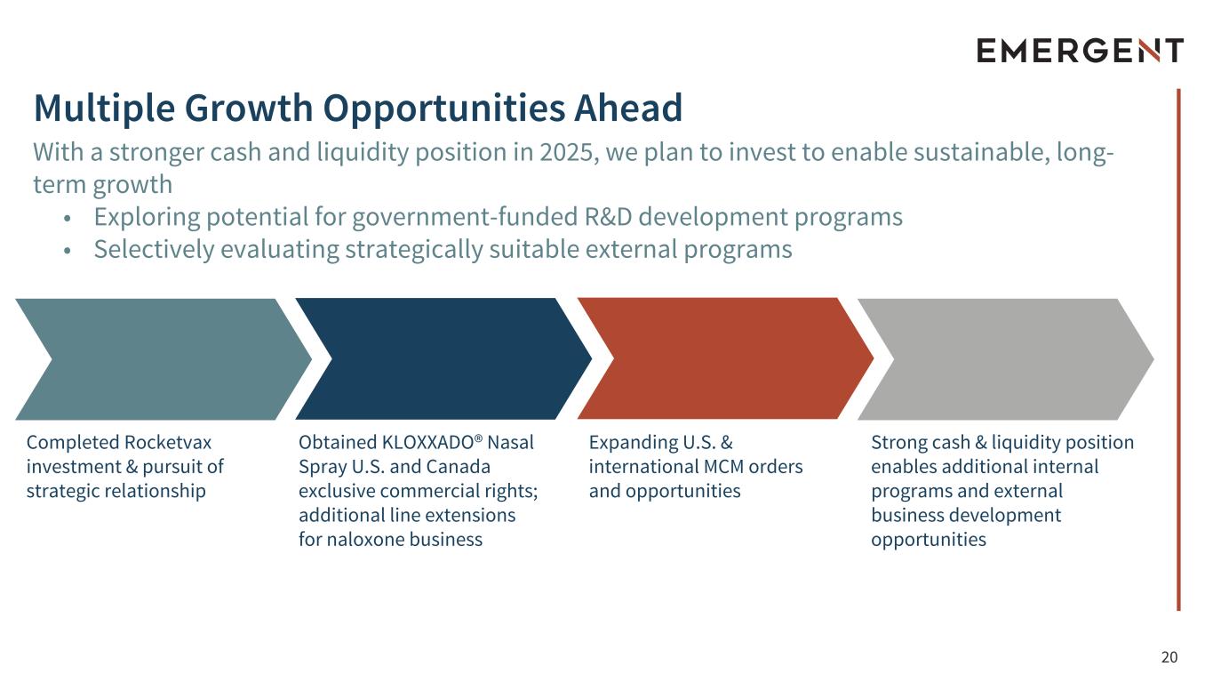 “Our second quarter results exceeded the top end of our revenue guidance by $21 million, and the bottom line exceeded our own internal expectations. In light of this, we are raising the low end/midpoint of full year 2025 profitability guidance, reflecting strong execution of our multi-year transformation plan,” said Joe Papa, president and CEO of Emergent. “We are making solid progress against key turnaround priorities, driven by improved profitability, expanding margins and sustained positive cash flow. Year to date, we have secured seven biodefense contract modifications, further demonstrating our leadership in medical countermeasures with the U.S. government and allied government stakeholders. We continue to explore potential organic and inorganic opportunities and assess strategic external investments that support stable, long-term growth for the enterprise. With sustained demand for life-saving naloxone, NARCAN® Nasal Spray 4 mg and KLOXXADO® Nasal Spray 8 mg, as well as an encouraging outlook in our medical countermeasures business, we remain confident in our full year guidance and expect a strong second half of the year.”