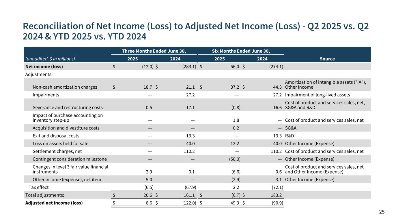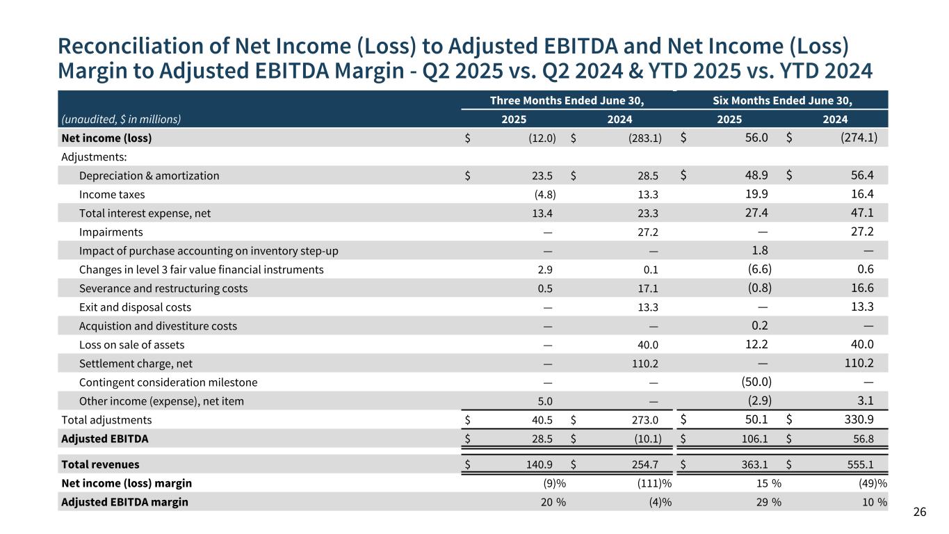 •Second Quarter 2025 Net Loss of $12.0 million and Net Loss Margin of (9)%, an improvement of 96% and 10,200 bps, respectively, versus prior year