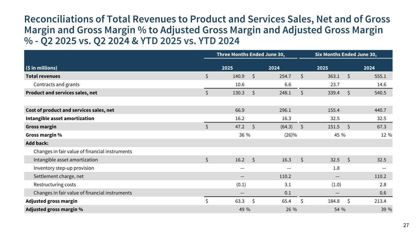 •Second Quarter 2025 Gross Margin % of 36% and Adjusted Gross Margin % of 49%, an expansion of 6,200 bps and 2,300 bps, respectively, versus prior year