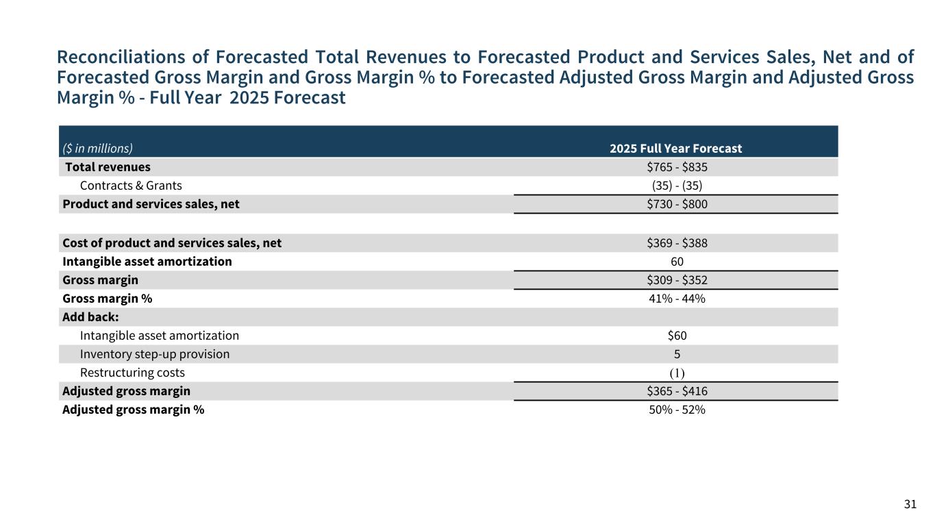 Reconciliations of Forecasted Total Revenues to Forecasted Product and Services Sales, Net and of Forecasted Gross Margin and Gross Margin % to Forecasted Adjusted Gross Margin and Adjusted Gross Margin %(1)