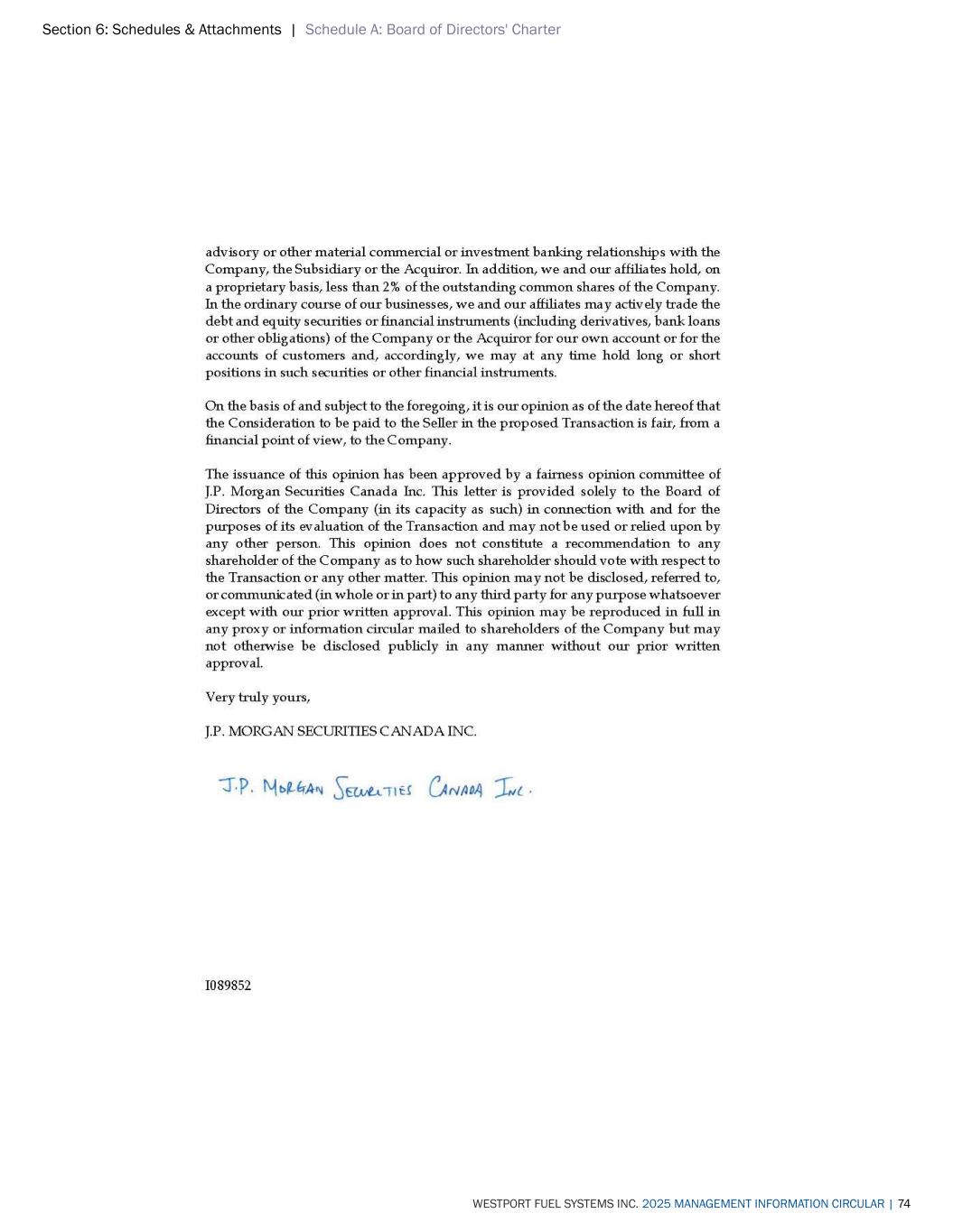 Section 6: Schedules & Attachments | Schedule A: Board of Directors' Charter WESTPORT FUEL SYSTEMS INC. 2025 MANAGEMENT INFORMATION CIRCULAR | 74