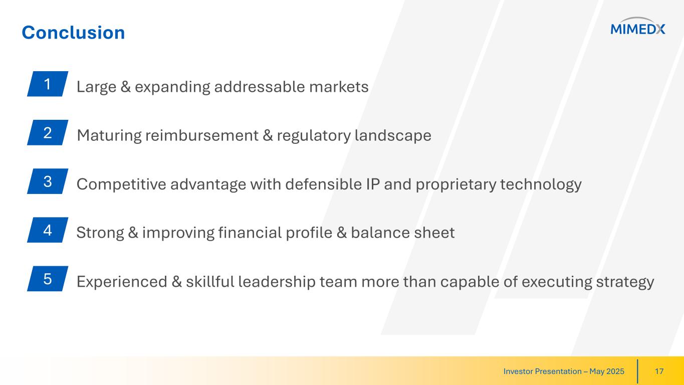For 2025, MIMEDX expects net sales growth to be at least in the high single-digits as a percentage compared to 2024. 2025 Adjusted EBITDA margin is expected to be above 20% on a full year basis.