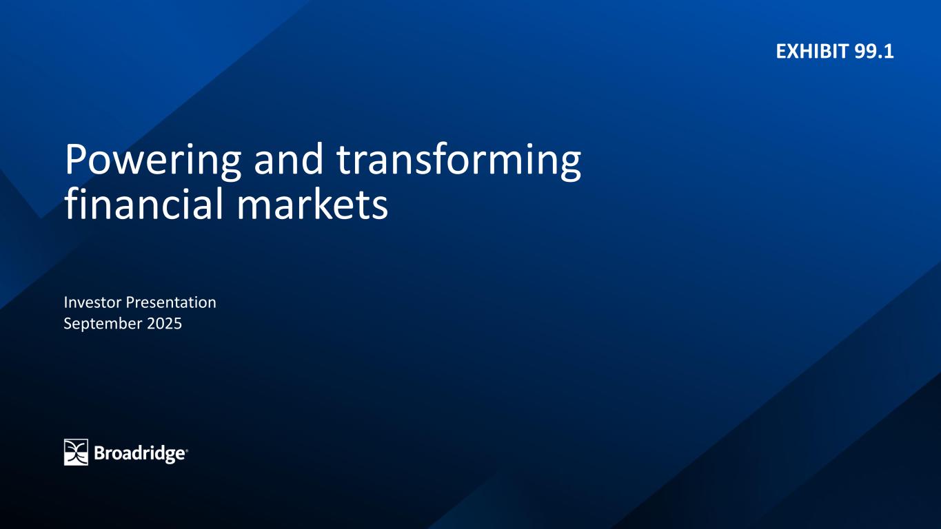 Powering and transforming financial markets Investor Presentation September 2025 EXHIBIT 99.1