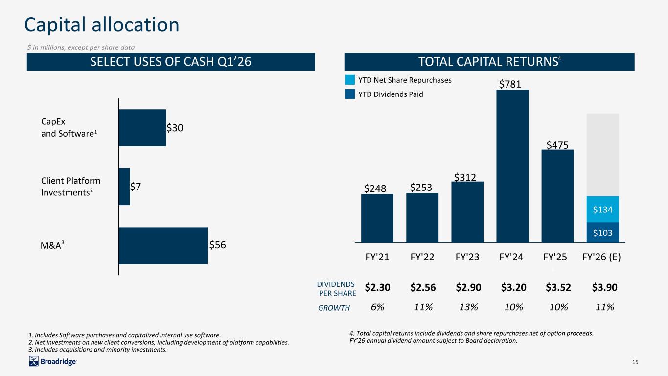 「また、長期的な成長のために資本を投下しています。当四半期には、ガバナンス・ビジネスを強化するために2件のタックイン買収を行い、1億5,000万ドルの自社株買戻しを行いました。
