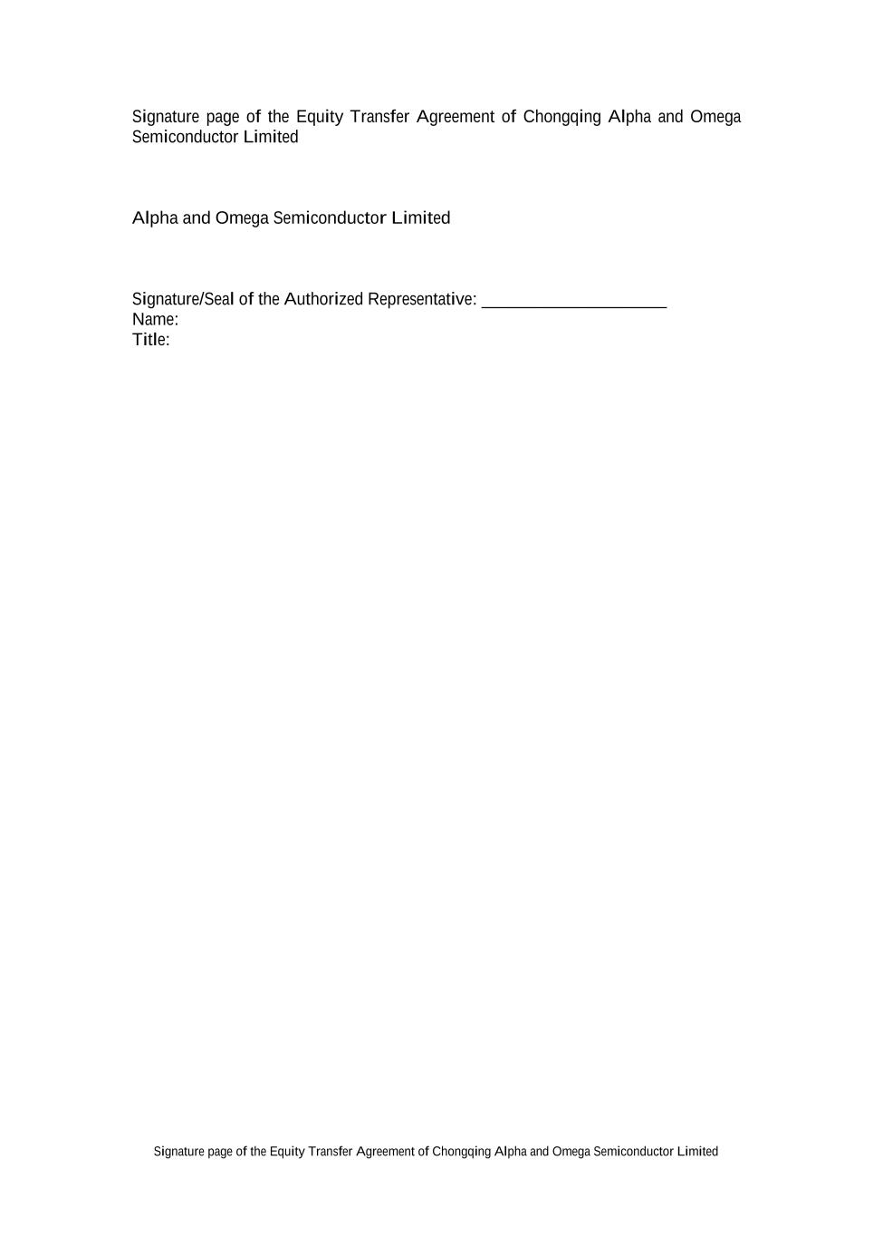 Signature page of the Equity Transfer Agreement of Chongqing Alpha and Omega Semiconductor Limited Signature page of the Equity Transfer Agreement of Chongqing Alpha and Omega Semiconductor Limited Chongqing Alpha and Omega Semiconductor Limited Signature/Seal of the Authorized Representative: _____________________ Name: Title: