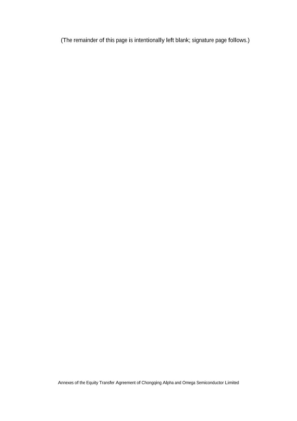 Annexes of the Equity Transfer Agreement of Chongqing Alpha and Omega Semiconductor Limited (The remainder of this page is intentionally left blank; signature page follows.)