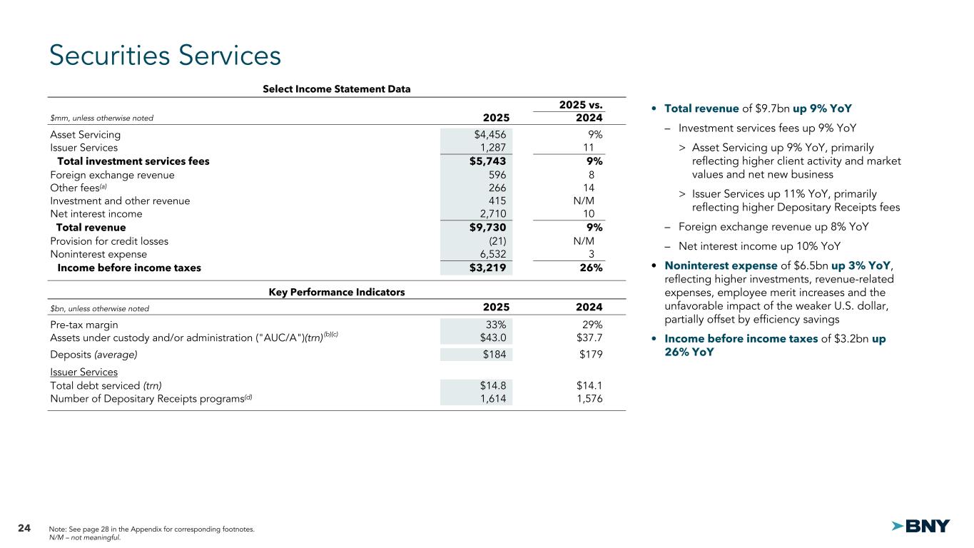 ニューヨーク、2026年1月13日 – バンク・オブ・ニューヨーク・メロン・コーポレーション(以下「BNY」)(NYSE: BK)は本日、2025年第4四半期の決算を発表した。
