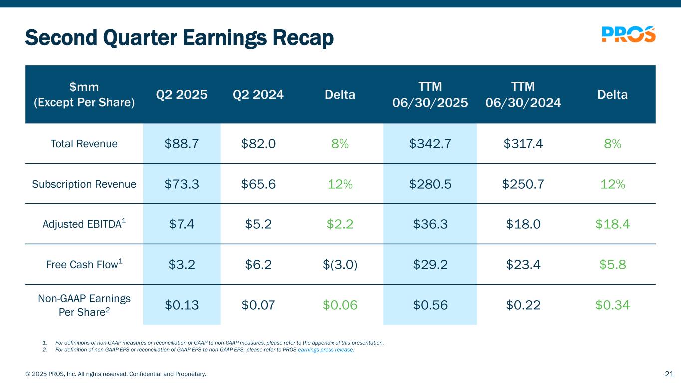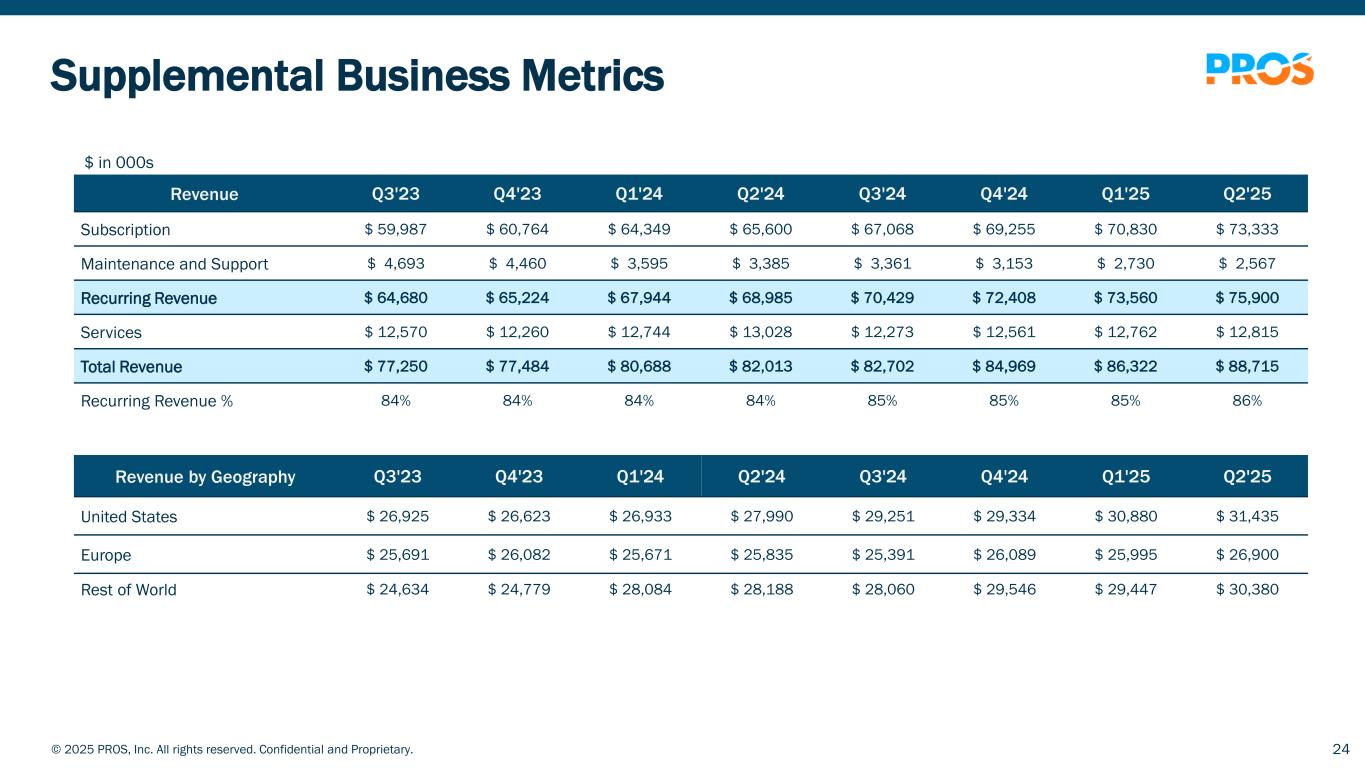 「今日の商業的成功の核心は、製品とソリューションの適切な組み合わせを適切な価格で提供することであり、企業は勝利の方程式を最適化するためにPROSに注目しています。「これは、すべての指標でガイダンスの上限を上回る好調な第2四半期が証明しています。私たちは長期的な価値を獲得し、AIを活用した企業変革の次の時代をリードする体制が整っているからです。"