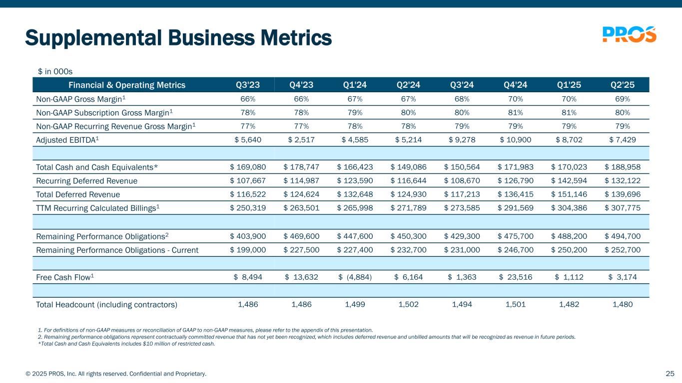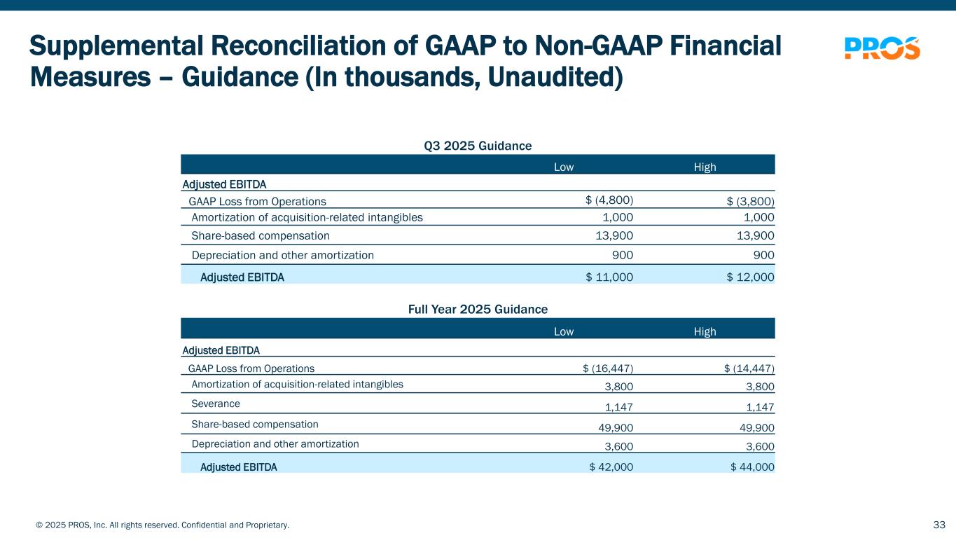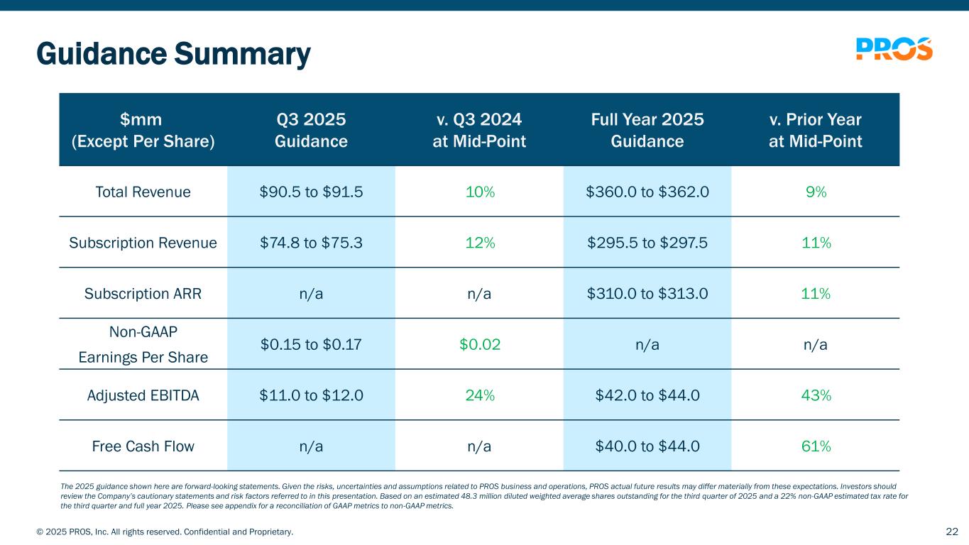 プロスは現在、2025年第3四半期の推定希薄化後加重平均発行済み株式数4,830万株、2025年第3四半期および通年の非GAAPベースの推定税率22%に基づき、以下を予想している。
