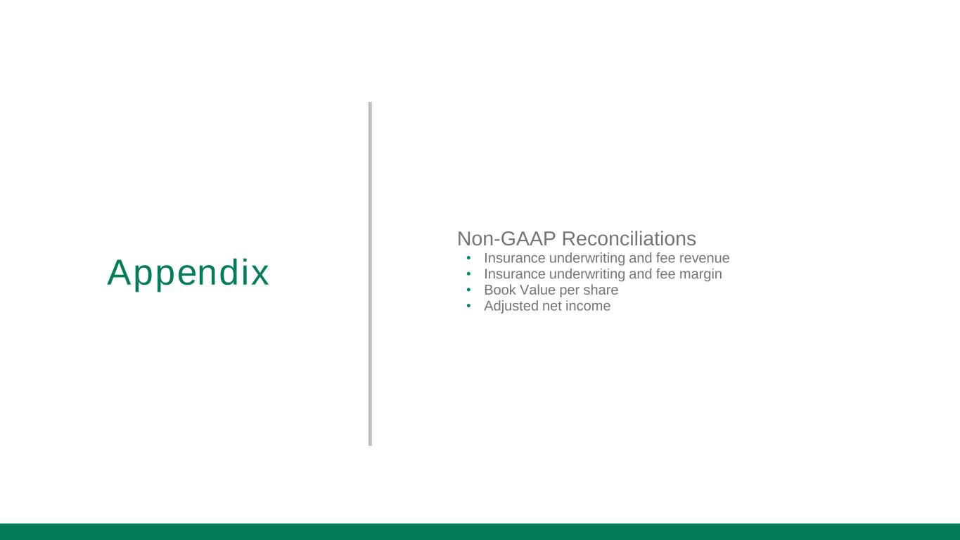 Appendix Non-GAAP Reconciliations • Insurance underwriting and fee revenue • Insurance underwriting and fee margin • Book Value per share • Adjusted net income