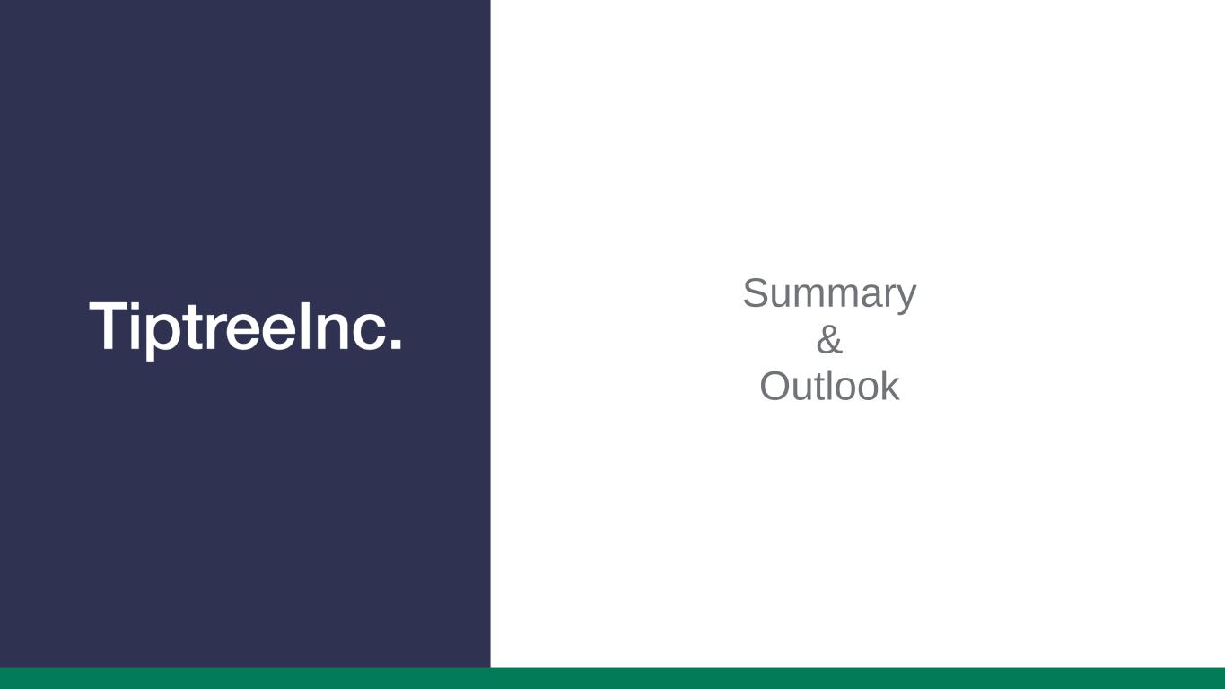 1 Disclaimers LIMITATIONS ON THE USE OF INFORMATION This presentation has been prepared by Tiptree Inc. and its consolidated subsidiaries (“Tiptree", "the Company" or "we”) solely for informational purposes, and not for the purpose of updating any information or forecast with respect to Tiptree, its subsidiaries or any of its affiliates or any other purpose. Tiptree reports a non-controlling interest in certain operating subsidiaries that are not wholly owned. Unless otherwise noted, all information is of Tiptree on a consolidated basis before non-controlling interest. Neither Tiptree nor any of its affiliates makes any representation or warranty, express or implied, as to the accuracy or completeness of the information contained herein and no such party shall have any liability for such information. These materials and any related oral statements are not all-inclusive and shall not be construed as legal, tax, investment or any other advice. You should consult your own counsel, accountant or business advisors. Performance information is historical and is not indicative of, nor does it guarantee future results. There can be no assurance that similar performance may be experienced in the future. SPECIAL NOTE REGARDING FORWARD-LOOKING STATEMENTS This document contains "forward-looking statements" which involve risks, uncertainties and contingencies, many of which are beyond Tiptree's control, which may cause actual results, performance, or achievements to differ materially from anticipated results, performance, or achievements. All statements contained herein that are not clearly historical in nature are forward-looking, and the words "anticipate," "believe," "estimate," "expect,“ “intend,” “may,” “might,” "plan," “project,” “should,” "target,“ “will,” "view," “confident,” or similar expressions are intended to identify forward-looking statements. Such forward-looking statements include, but are not limited to, statements about Tiptree's plans, objectives, expectations and intentions. The forward-looking statements are not guarantees of future performance and are subject to risks, uncertainties and other factors, many of which are beyond our control, are difficult to predict and could cause actual results to differ materially from those expressed or forecast in the forward-looking statements. Our actual results could differ materially from those anticipated in these forward-looking statements as a result of various factors, including, but not limited to those described in the section entitled “Risk Factors” in Tiptree’s Annual Report on Form 10-K, and as described in the Tiptree’s other filings with the SEC. Readers are cautioned not to place undue reliance on these forward-looking statements, which speak only as to the date of this release. The factors described therein are not necessarily all of the important factors that could cause actual results or developments to differ materially from those expressed in any of our forward-looking statements. Other unknown or unpredictable factors also could affect our forward-looking statements. Consequently, our actual performance could be materially different from the results described or anticipated by our forward-looking statements. Given these uncertainties, you should not place undue reliance on these forward-looking statements. Except as required by the federal securities laws, we undertake no obligation to update any forward- looking statements. MARKET AND INDUSTRY DATA Certain market data and industry data used in this presentation were obtained from reports of governmental agencies and industry publications and surveys. We believe the data from third-party sources to be reliable based upon our management’s knowledge of the industry, but have not independently verified such data and as such, make no guarantees as to its accuracy, completeness or timeliness. NOT AN OFFER OR A SOLICIATION This document does not constitute an offer or invitation for the sale or purchase of securities or to engage in any other transaction with Tiptree, its subsidiaries or its affiliates. The information in this document is not targeted at the residents of any particular country or jurisdiction and is not intended for distribution to, or use by, any person in any jurisdiction or country where such distribution or use would be contrary to local law or regulation. NON-GAAP MEASURES In this document, we sometimes use financial measures derived from consolidated financial data but not presented in our financial statements prepared in accordance with U.S. generally accepted accounting principles ("GAAP"). Certain of these data are considered “non-GAAP financial measures” under the SEC rules. These non-GAAP financial measures supplement our GAAP disclosures and should not be considered an alternative to the GAAP measure. Management's reasons for using these non-GAAP financial measures and the reconciliations to their most directly comparable GAAP financial measures are posted in the Appendix.