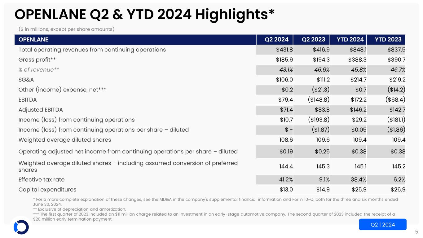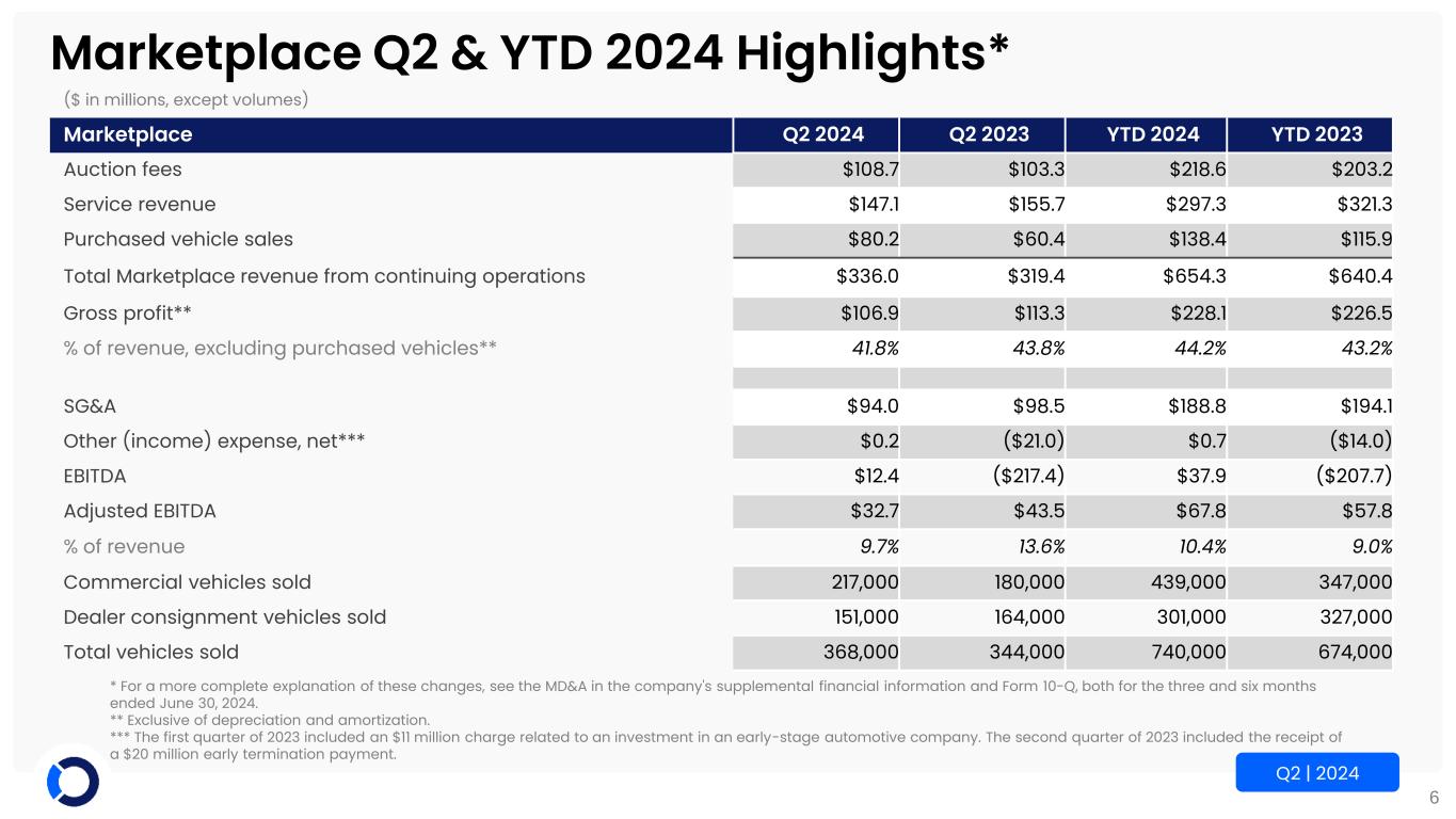 Cash flow from investing activities (discontinued operations) There were no investing activities (discontinued operations) for the six months ended June 30, 2024, compared with net cash provided by investing activities of $7.0 million for the six months ended June 30, 2023. The cash provided by investing activities for the six months ended June 30, 2023 was attributable to the final proceeds from the sale of the ADESA U.S. physical auction business.