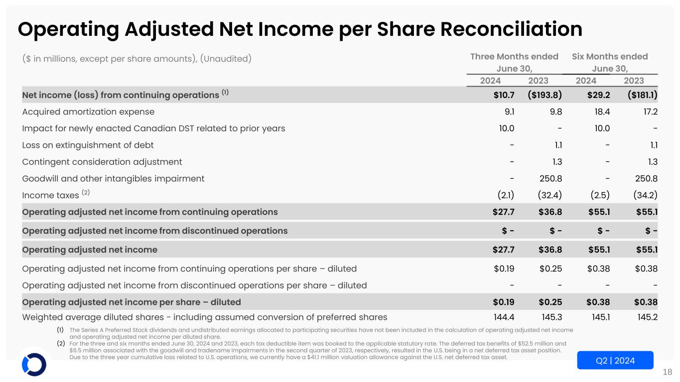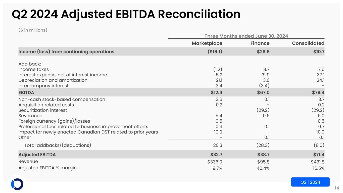 The following tables reconcile EBITDA and Adjusted EBITDA to income (loss) from continuing operations for the periods presented: