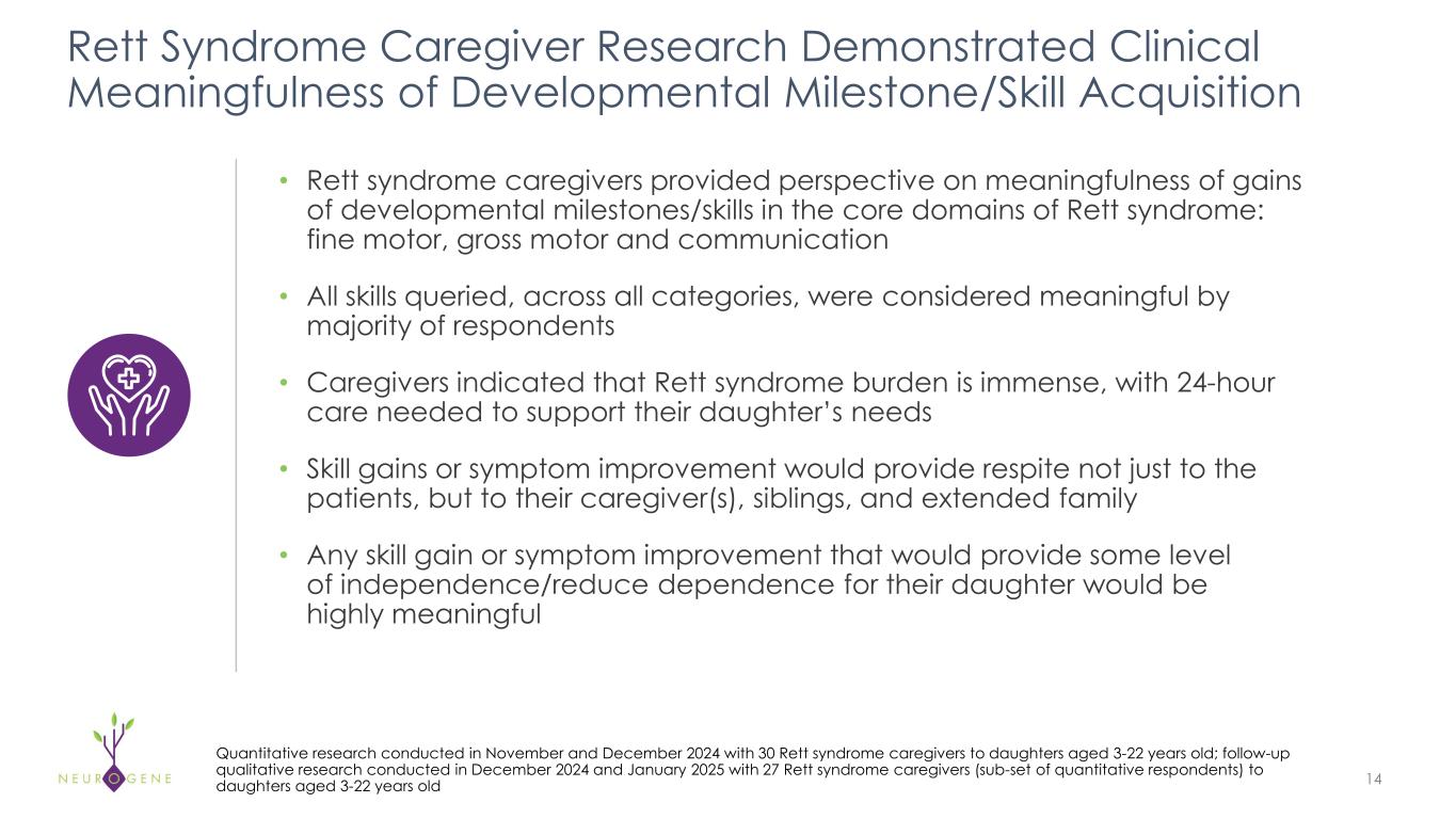 Statements in this press release which are not historical in nature are intended to be, and hereby are identified as, forward-looking statements within the meaning of the Private Securities Litigation Reform Act of 1995. These statements may discuss goals, intentions and expectations as to future plans, trends, events, results of operations or financial condition, or otherwise, based on current expectations and beliefs of the management of Neurogene, as well as assumptions made by, and information currently available to, management of Neurogene, including, but not limited to, statements regarding: our proposed trial design for the EmboldenTM registrational clinical trial, including details related to the timing and anticipated results of our registrational clinical trial such as anticipated dates for initial enrollment, the number of trial sites participating in the clinical trial, the anticipated date of 12 month endpoint data availability, and the ability to expedite the submission of a BLA application for NGN-401; the potential for improved efficacy of NGN-401 as a treatment for Rett syndrome when compared to other treatment candidates using a different route of administration; patient and KOL sentiment relating to priorities on selecting potential gene therapy treatments; expected future interactions with or positions of the FDA; the safety, tolerability and efficacy of NGN-401; the potential for success of the Embolden registrational clinical trial for NGN-401 for the treatment of Rett syndrome; expected timing for additional interim data from the Company’s NGN-401 Phase 1/2 trial for Rett syndrome; the potential superiority of ICV administration as compared to IT-L administration, based in part on preclinical NHP data; and the effectiveness of the monitoring and treatment protocol for HLH in Neurogene’s Phase 1/2 clinical trial of NGN-401.