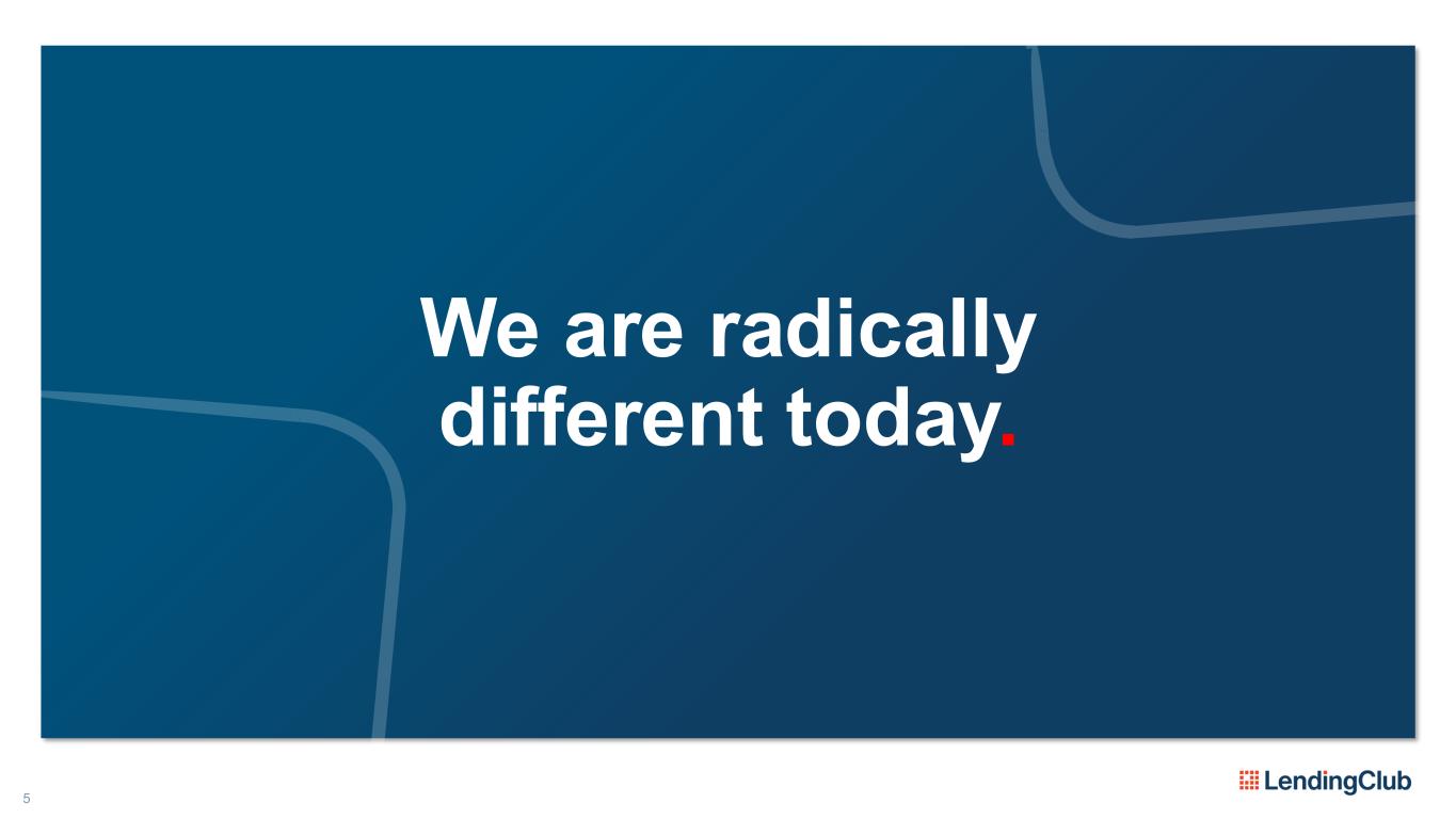 3 Disclaimer Some of the statements in this presentation, including statements regarding our competitive advantages, loan and financial performance, business growth opportunities and outlook, and demand for our products, are “forward-looking statements.” The words “anticipate,” “believe,” “estimate,” “expect,” “intend,” “may,” “outlook,” “plan,” “predict,” “project,” “will,” “would” and similar expressions may identify forward-looking statements, although not all forward-looking statements contain these identifying words. Factors that could cause actual results to differ materially from those contemplated by these forward-looking statements include: our ability to continue to attract new and retain existing borrowers and platform investors; the impact of current and planned initiatives; competition; overall economic conditions; the interest rate and macroeconomic environment; the regulatory environment; default rates and those factors set forth in the section titled “Risk Factors” in our most recent Annual Report on Form 10-K as filed with the Securities and Exchange Commission, as well as in our subsequent filings with the Securities and Exchange Commission. We may not actually achieve the plans, intentions or expectations disclosed in forward-looking statements, and you should not place undue reliance on forward-looking statements. Actual results or events could differ materially from the plans, intentions and expectations disclosed in forward-looking statements. Accordingly, you should not place undue reliance on the forward-looking statements in this presentation and we do not assume any obligation to update any forward-looking statements, whether as a result of new information, future events or otherwise, except as required by law. This presentation contains non-GAAP financial measures relating to our performance, including: Tangible Book Value Per Common Share, Return on Invested Capital and Return on Tangible Common Equity. Our non-GAAP financial measures have limitations as analytical tools, are not prepared under any comprehensive set of accounting rules or principles and should not be considered in isolation or as a substitute for our results under accounting principles generally accepted in the United States (GAAP). We believe these non-GAAP financial measures provide management and investors with useful supplemental information about the financial performance of our business, enable comparison of financial results between periods where certain items may vary independent of business performance, and enable comparison of our financial results with other public companies. You can find the reconciliation of certain non-GAAP financial measures to the most directly comparable GAAP measures on pages 132 of this presentation. Note that we do not provide a reconciliation of forward-looking non-GAAP financial measures to the most directly comparable GAAP financial measures on a forward-looking basis because we are unable to predict certain elements of such forward-looking measures with reasonable certainty without unreasonable effort. Credit Karma, Bankrate, LendingTree, NerdWallet, Moasic, Wisetack, Apple AppStore, Google Play, Narmi, and Cushion are not registered marks of LendingClub. The inclusion of these marks in this presentation is not reflective of an endorsement of this presentation, or its contents, by the third-party owners of these marks. LendingClub Corporation (NYSE: LC) is the parent company of LendingClub Bank, National Association, Member FDIC.