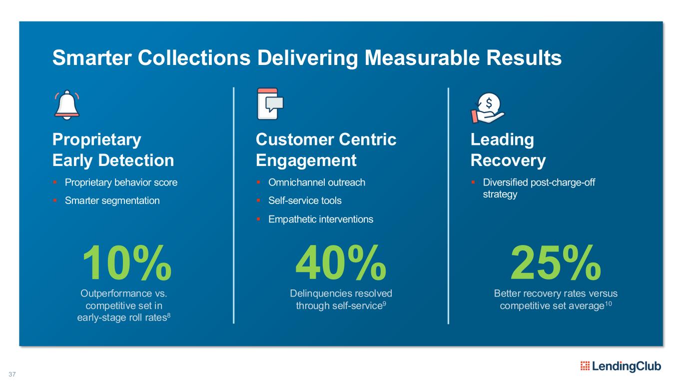 36 AI Powered Fraud Prevention: Leading Protection & Speed <3bps LendingClub’s fraud loss rate since 2020 – among the industry’s best Device identity Login behavior Bank patterns Geolocation Card usage Identity Email<1 sec