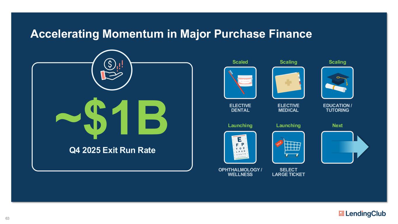63 Accelerating Momentum in Major Purchase Finance ELECTIVE DENTAL ELECTIVE MEDICAL EDUCATION / TUTORING SELECT LARGE TICKET Scaled Scaling Scaling OPHTHALMOLOGY / WELLNESS Launching Launching~$1B Q4 2025 Exit Run Rate Next
