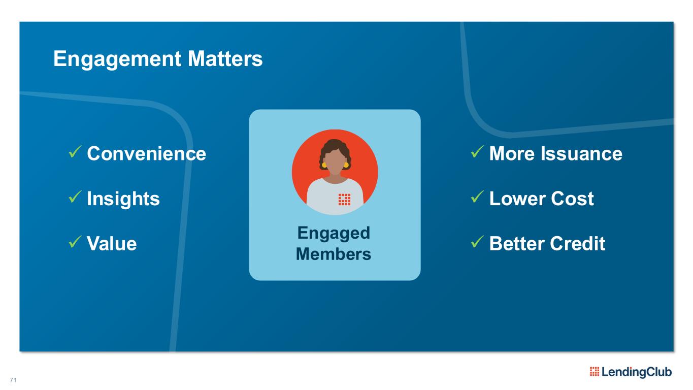 71 Engagement Matters Engaged Members ✓More Issuance ✓ Lower Cost ✓Better Credit ✓Convenience ✓ Insights ✓ Value
