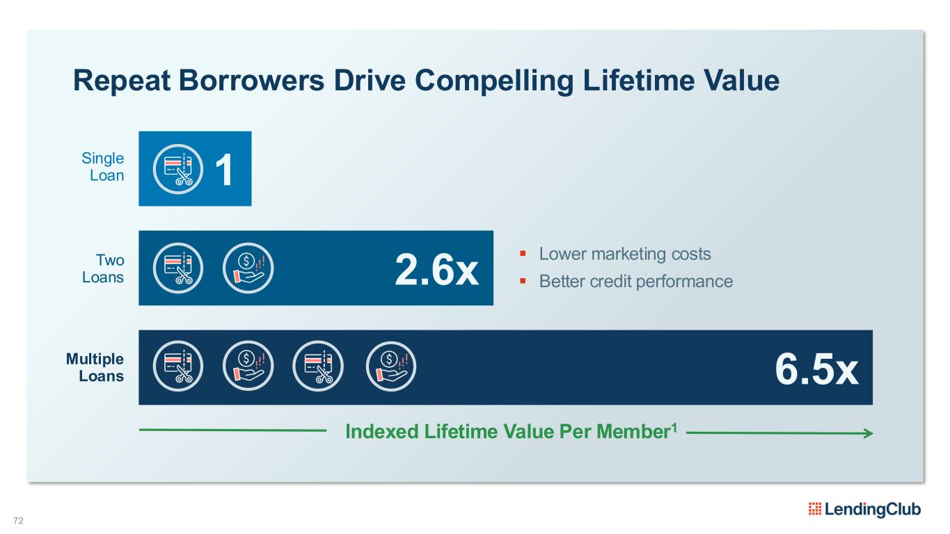 72 Repeat Borrowers Drive Compelling Lifetime Value 1 Single Loan 2.6x ▪ Lower marketing costs ▪ Better credit performance Two Loans 6.5xMultiple Loans Indexed Lifetime Value Per Member1