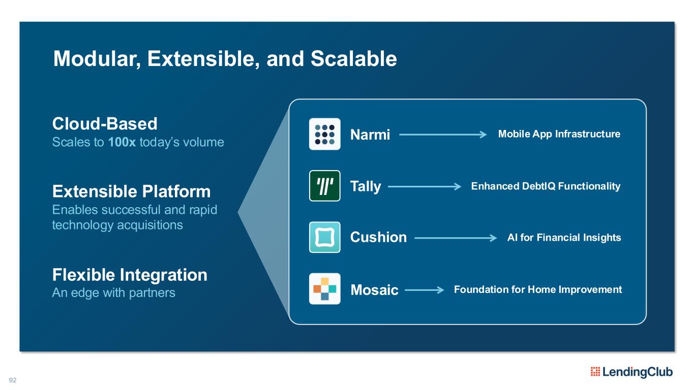 92 Modular, Extensible, and Scalable Cloud-Based Scales to 100x today’s volume Flexible Integration An edge with partners Extensible Platform Enables successful and rapid technology acquisitions Mobile App InfrastructureNarmi Tally Cushion Mosaic Enhanced DebtIQ Functionality AI for Financial Insights Foundation for Home Improvement