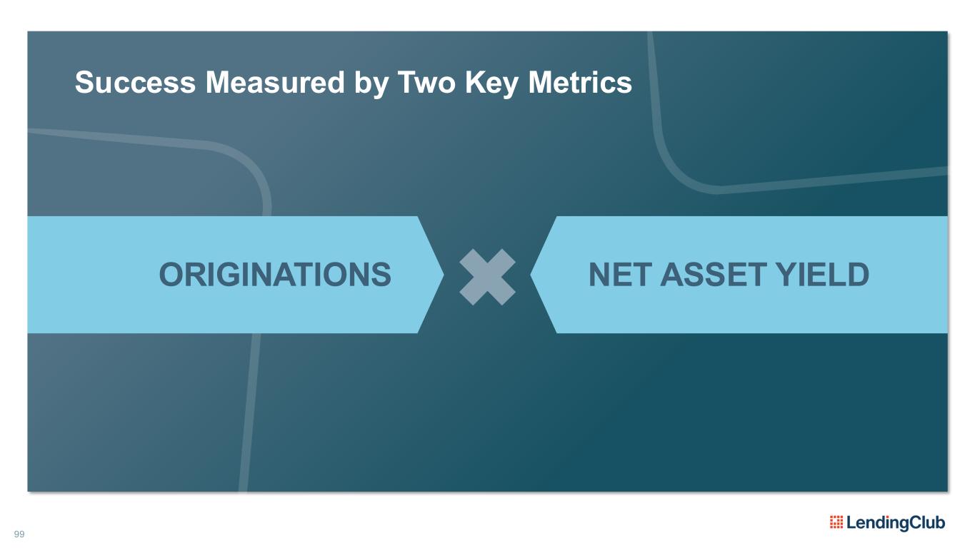 99 Success Measured by Two Key Metrics ORIGINATIONS NET ASSET YIELD