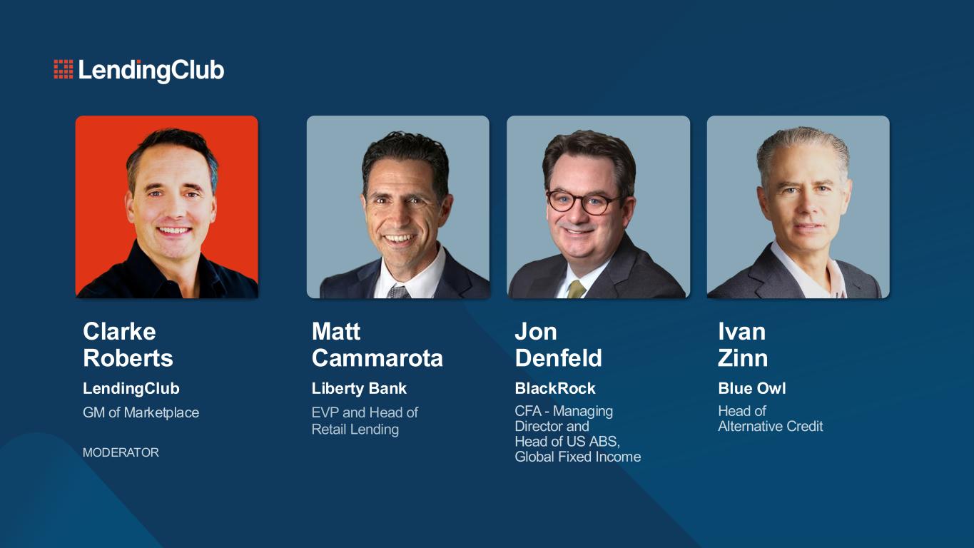 Clarke Roberts LendingClub GM of Marketplace Matt Cammarota Liberty Bank EVP and Head of Retail Lending Jon Denfeld BlackRock CFA - Managing Director and Head of US ABS, Global Fixed IncomeMODERATOR Ivan Zinn Blue Owl Head of Alternative Credit