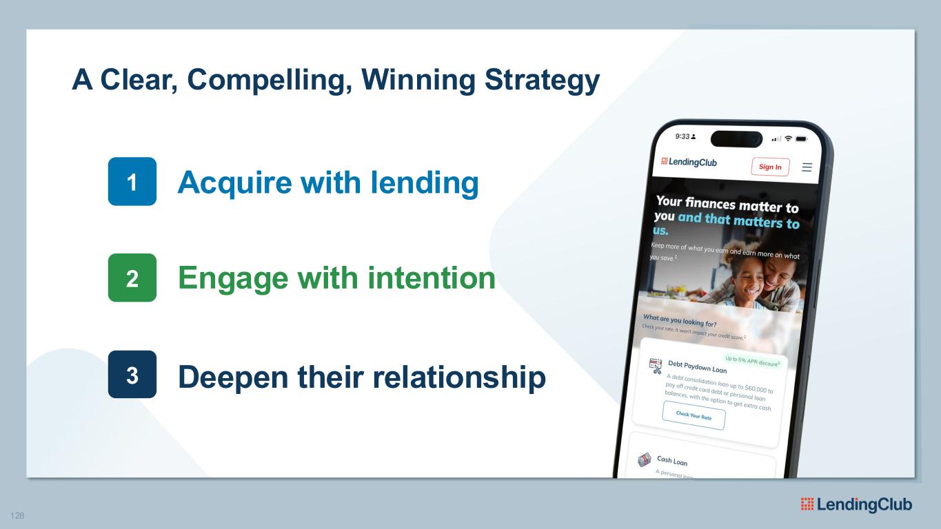 128 A Clear, Compelling, Winning Strategy 1 Acquire with lending 2 Engage with intention 3 Deepen their relationship