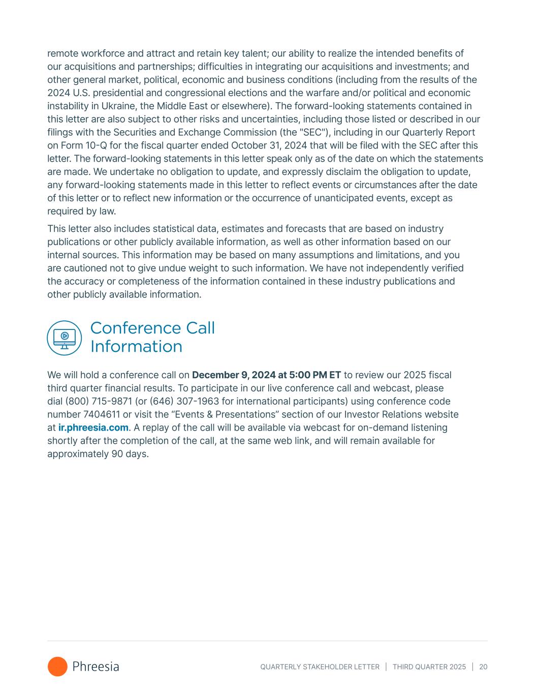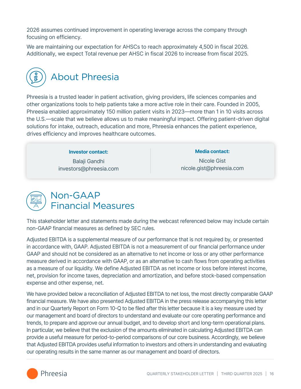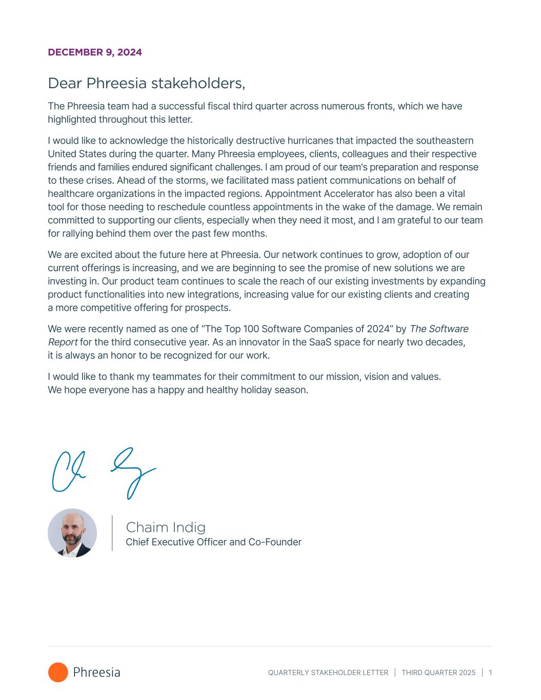 当社の2025年度第3四半期ステークホルダー・レターは、フリージアの投資家向けウェブサイトir.phreesia.comをご覧ください。