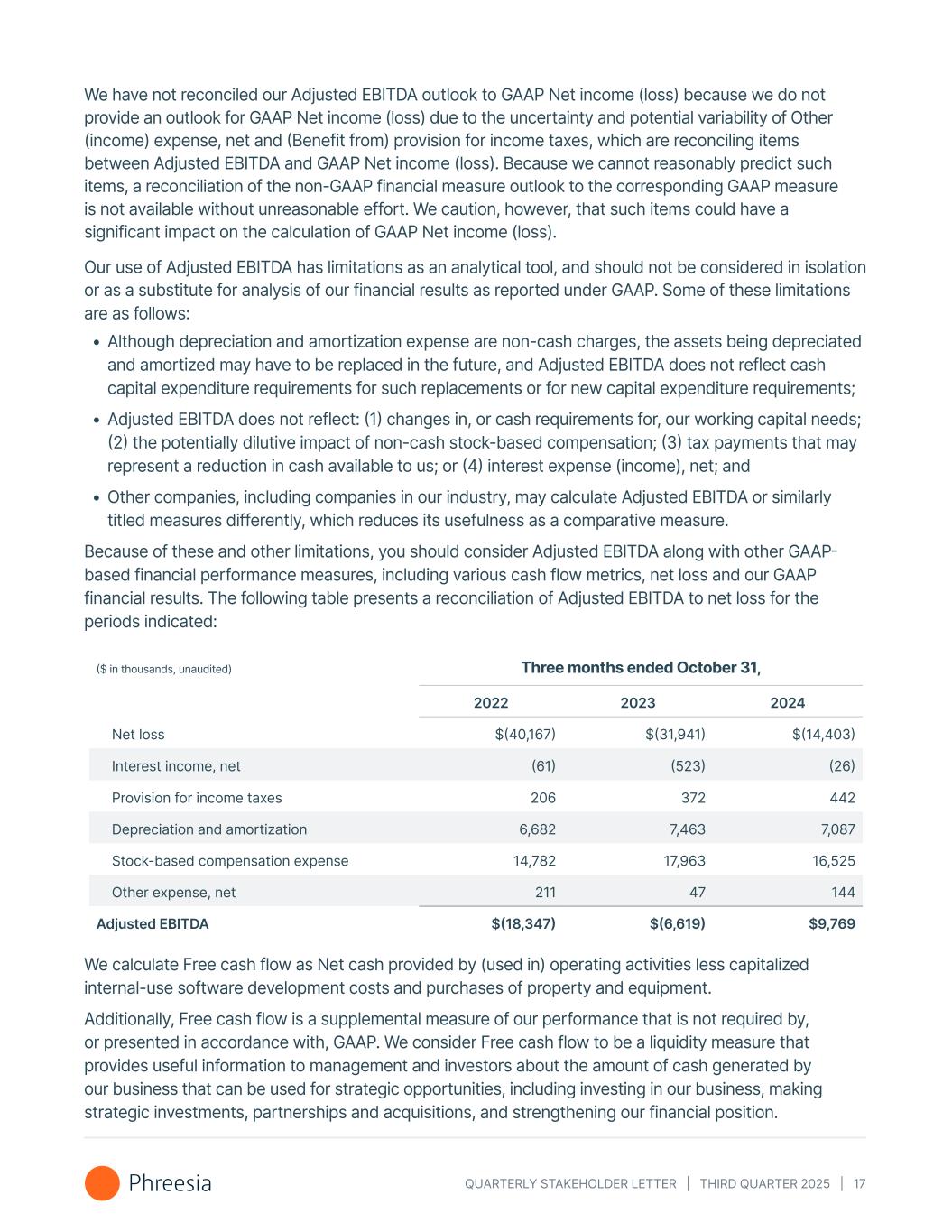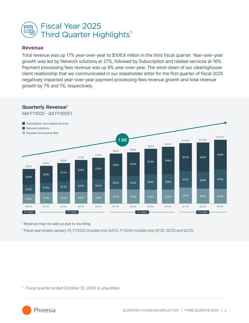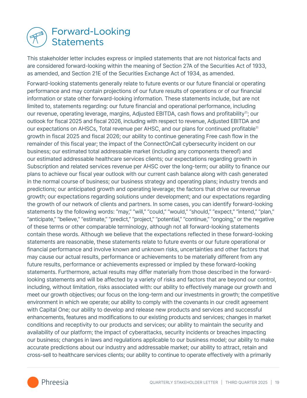 当社の2025年度第3四半期ステークホルダー・レターは、フリージアの投資家向けウェブサイトir.phreesia.comをご覧ください。