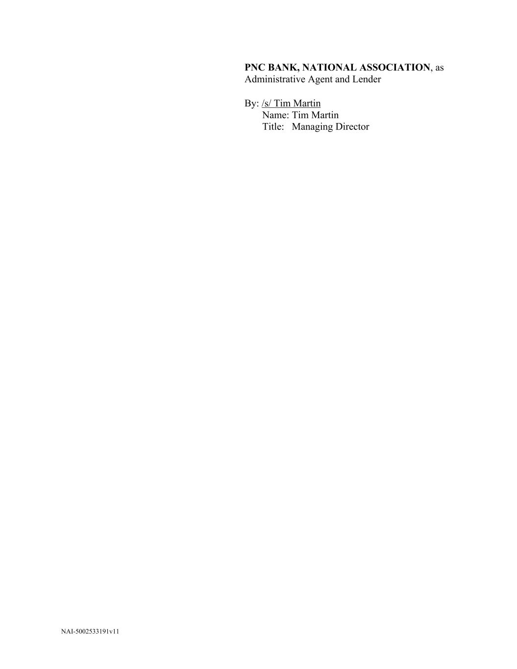 NAI-5002533191v11 PNC BANK, NATIONAL ASSOCIATION, as Administrative Agent and Lender By: /s/ Tim Martin Name: Tim Martin Title: Managing Director