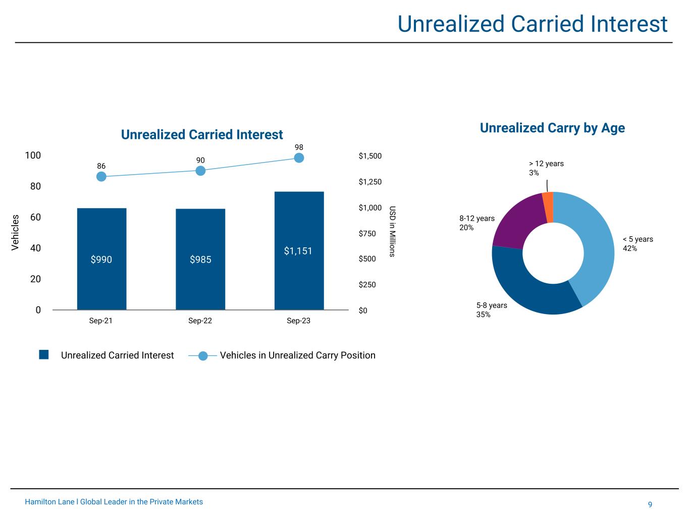 9Hamilton Lane l Global Leader in the Private Markets Unrealized Carried Interest Period Ending Ve hi cl es USD in M illions Unrealized Carried Interest $990 $985 $1,151 86 90 98 Unrealized Carried Interest Vehicles in Unrealized Carry Position Sep-21 Sep-22 Sep-23 0 20 40 60 80 100 $0 $250 $500 $750 $1,000 $1,250 $1,500 Unrealized Carry by Age < 5 years 42% 5-8 years 35% 8-12 years 20% > 12 years 3%