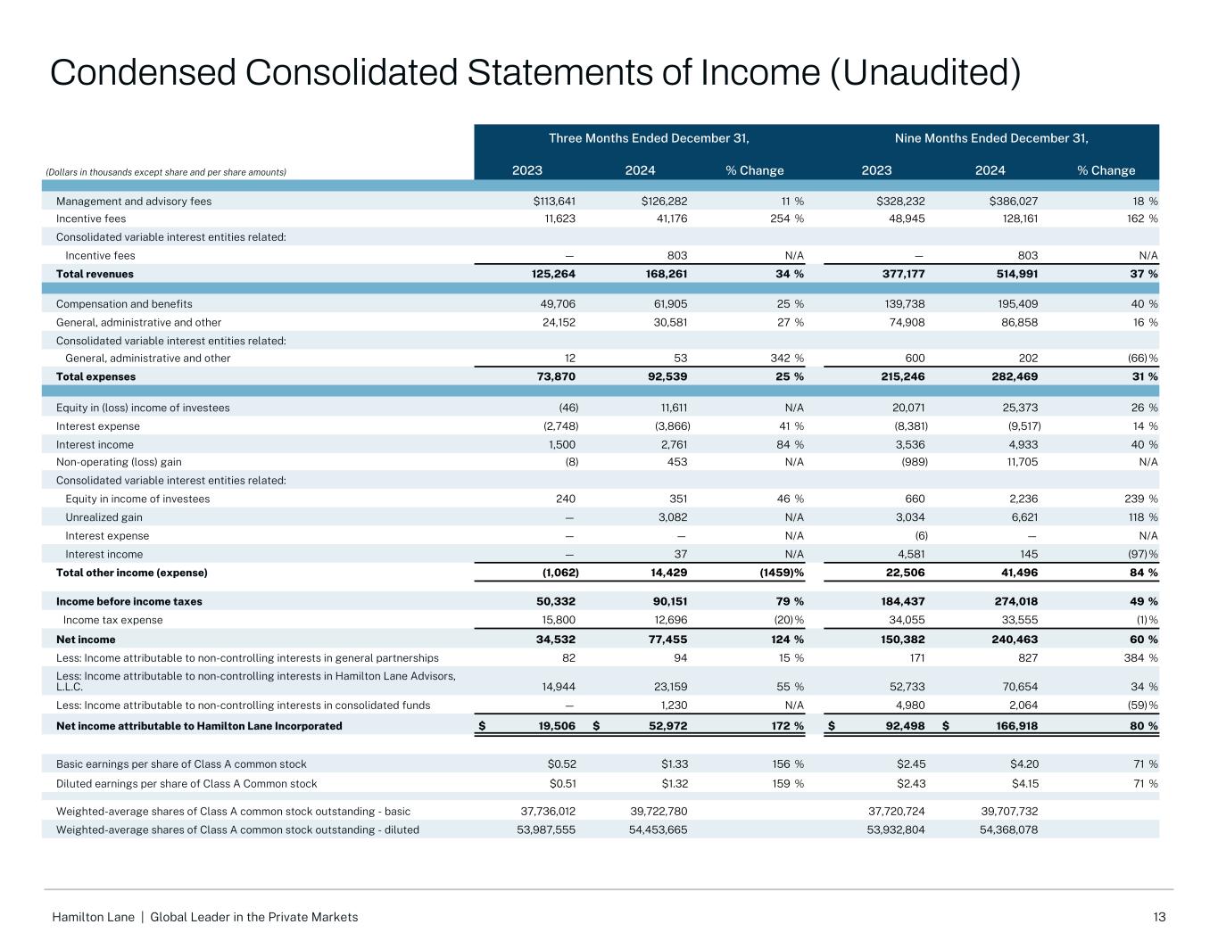 ハミルトン・レーンは、2025年度第3四半期決算の詳細プレゼンテーションを発表した。このプレゼンテーションは、当社の株主向けウェブサイトhttps://shareholders.hamiltonlane.com/。